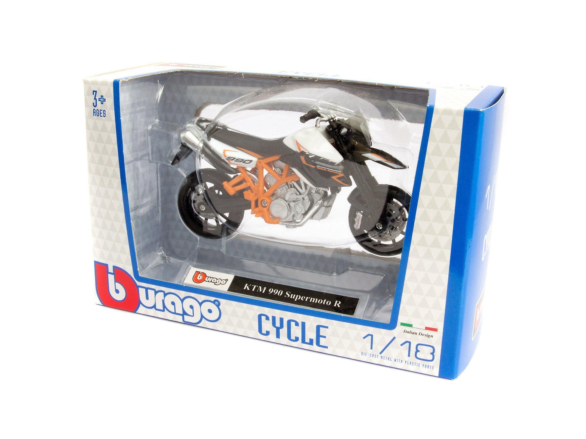 Motorcycle enthusiasts of all ages will love this KTM 990 Supermoto R diecast model motorcycle in 1:18 scale by Bburago. Accurately modelled on a 2011 bike with a black and white paint scheme, it's pre-built, ready to be displayed and have its detail and finish admired.