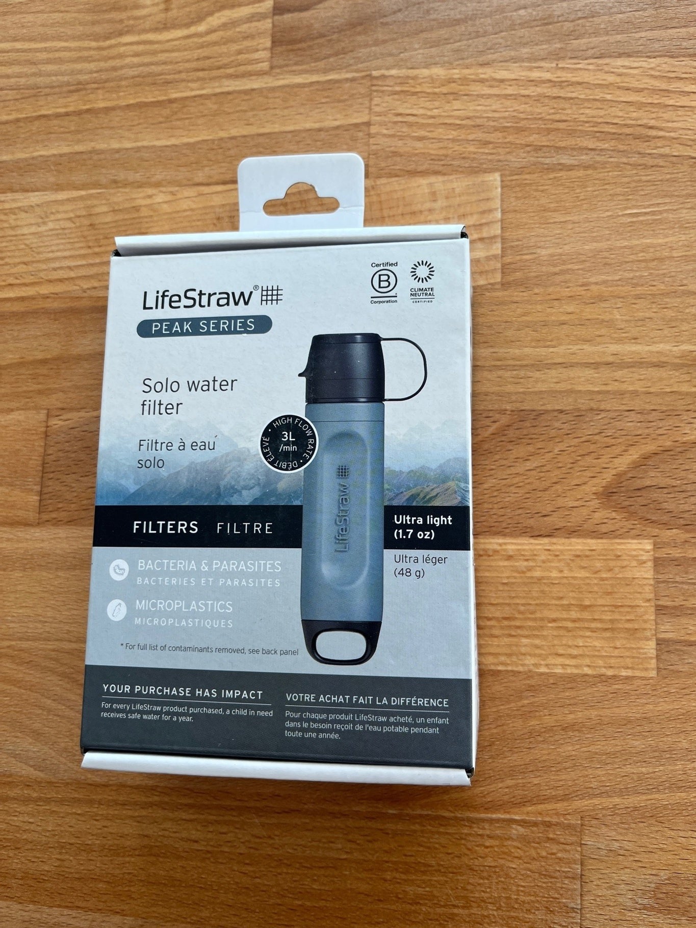 Experience the unbeatable convenience of the LifeStraw Peak Series Solo Water Filter. Lightweight, compact, and portable, this innovative device removes bacteria, parasites, microplastics, silt, sand, and cloudiness from any water source. With its 28mm threading, it can easily be attached to most standard water bottles. The one-handed flip cap makes on-the-go filtration effortless - fill up a 1L bottle in just 20 seconds! Perfect for any adventure, from hiking and backpacking to emergency situations and travel, this filter is a must-have for any on-the-go needs. At only 50g, with an impressive 2,000L capacity, make sure to keep one in your backpack, pocket, emergency bag, or glove compartment. Never compromise on clean drinking water again.