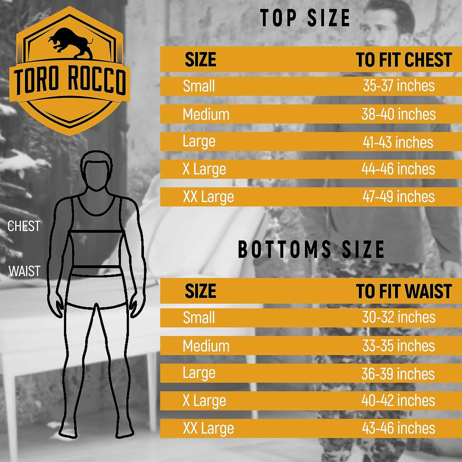 - XX-Large: Chest 48"-50" (122-127cm), Waist 41"-44" (104-112cm)