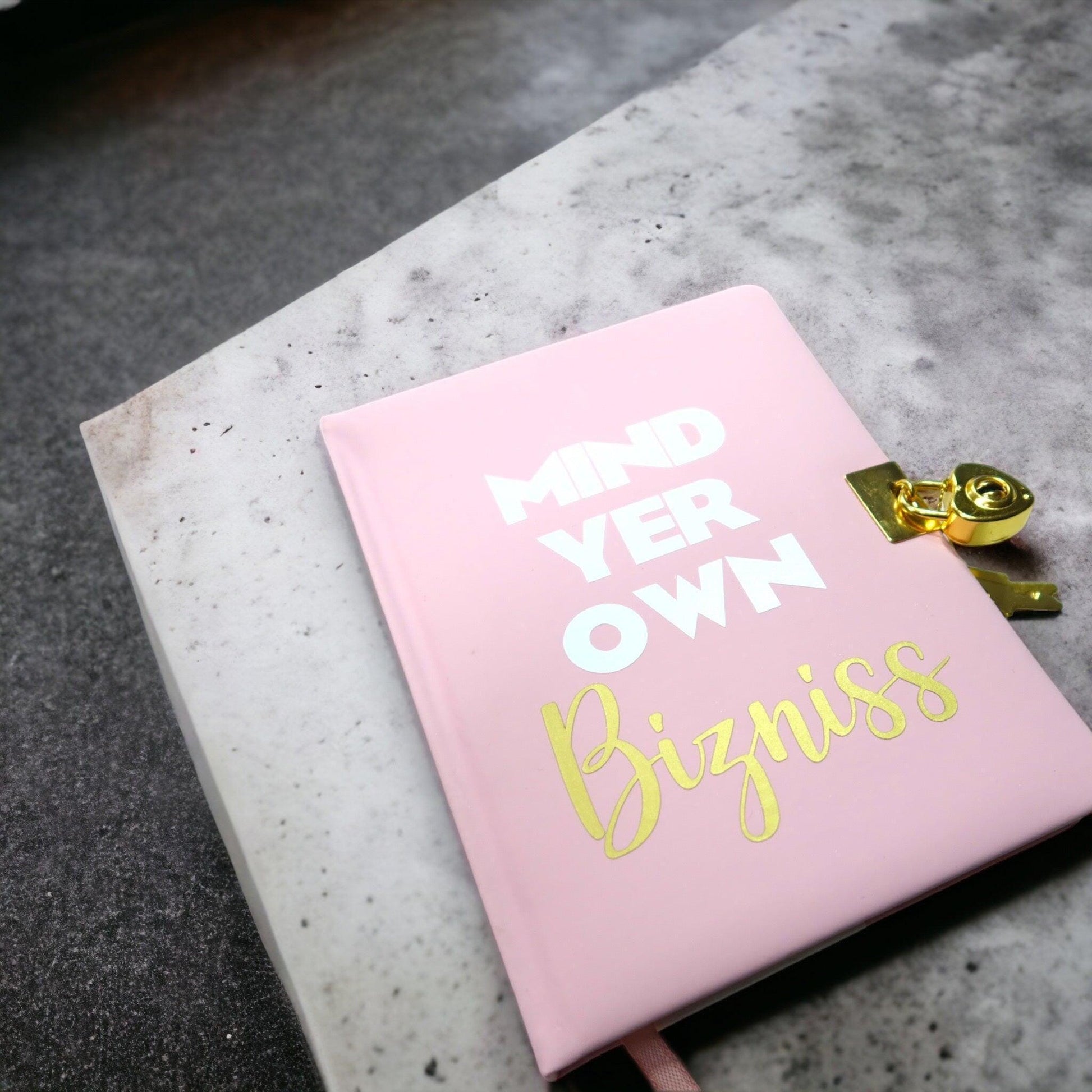 For the ones who love to journal, rant, plan world domination, or just keep nosy people out of their business, this ‘Mind Yer Own Bizniss’ Lockable Journal is the one! With a secure lock to keep prying eyes away, this notebook is perfect for writing down your thoughts, dreams, and dramatic overreactions in complete privacy.