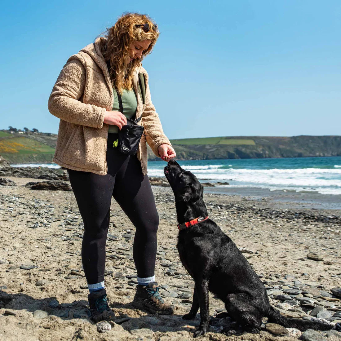 Simplify your dog walks with the Mountain Paws Dog Snack Accessory Pack in black. This versatile pack offers a roomy main compartment for treats, a dedicated phone pocket for quick access, and an additional front pocket for extra storage. Stay ready with a built-in poo bag dispenser and a convenient poo bag pocket. Its adjustable strap and belt loop let you carry it your way, while water-resistant fabric and waterproof zips protect your essentials from the elements. Keep everything organized and dry on every adventure.