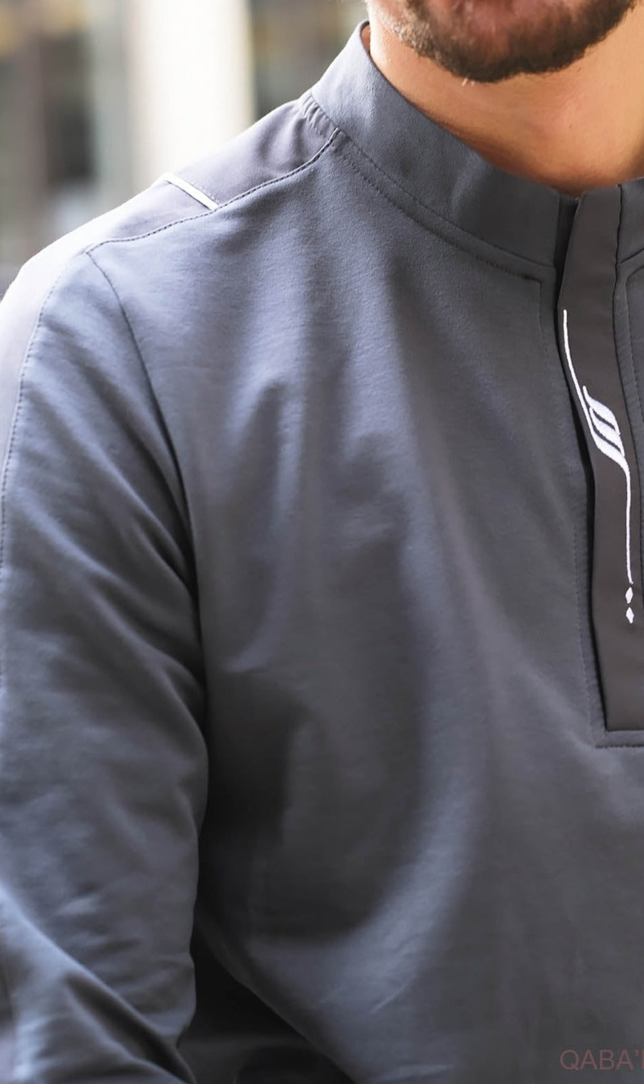 Muslim Men’s Short Jubba Kamisweat Subtil QL in Dark Grey and White