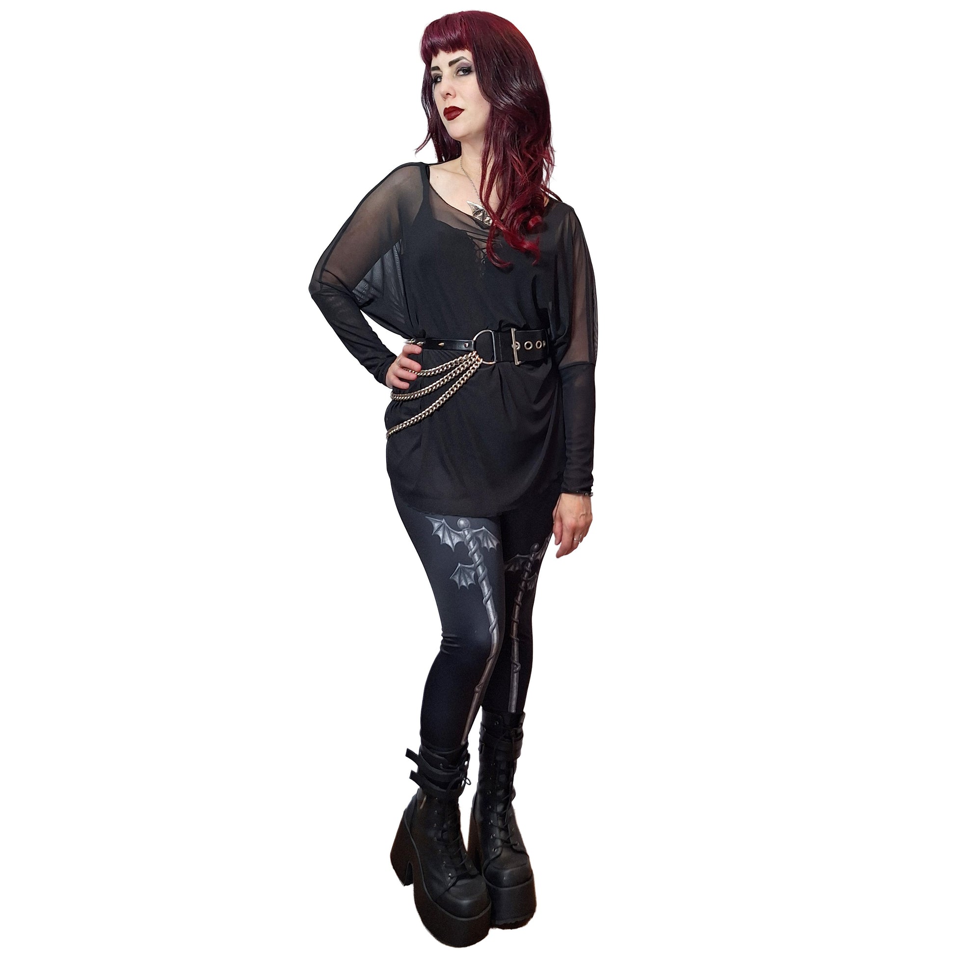 Embrace dark elegance with the Necessary Evil Circe Goth Top – a sheer mesh masterpiece designed to add instant drama to your alternative wardrobe. With its flowing, oversized cut and lightweight fabric, this UK-made top is the perfect layering piece for creating striking goth looks.