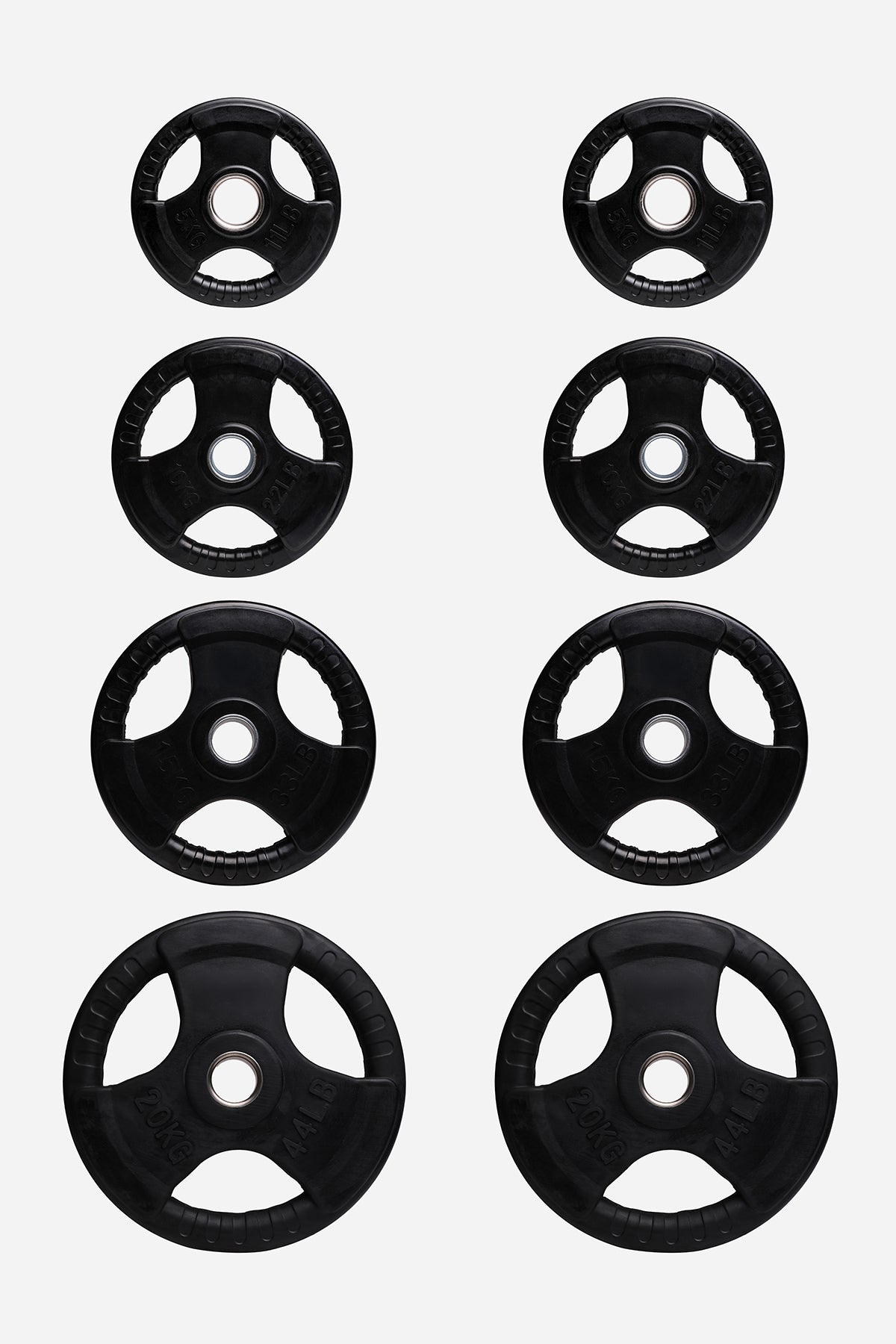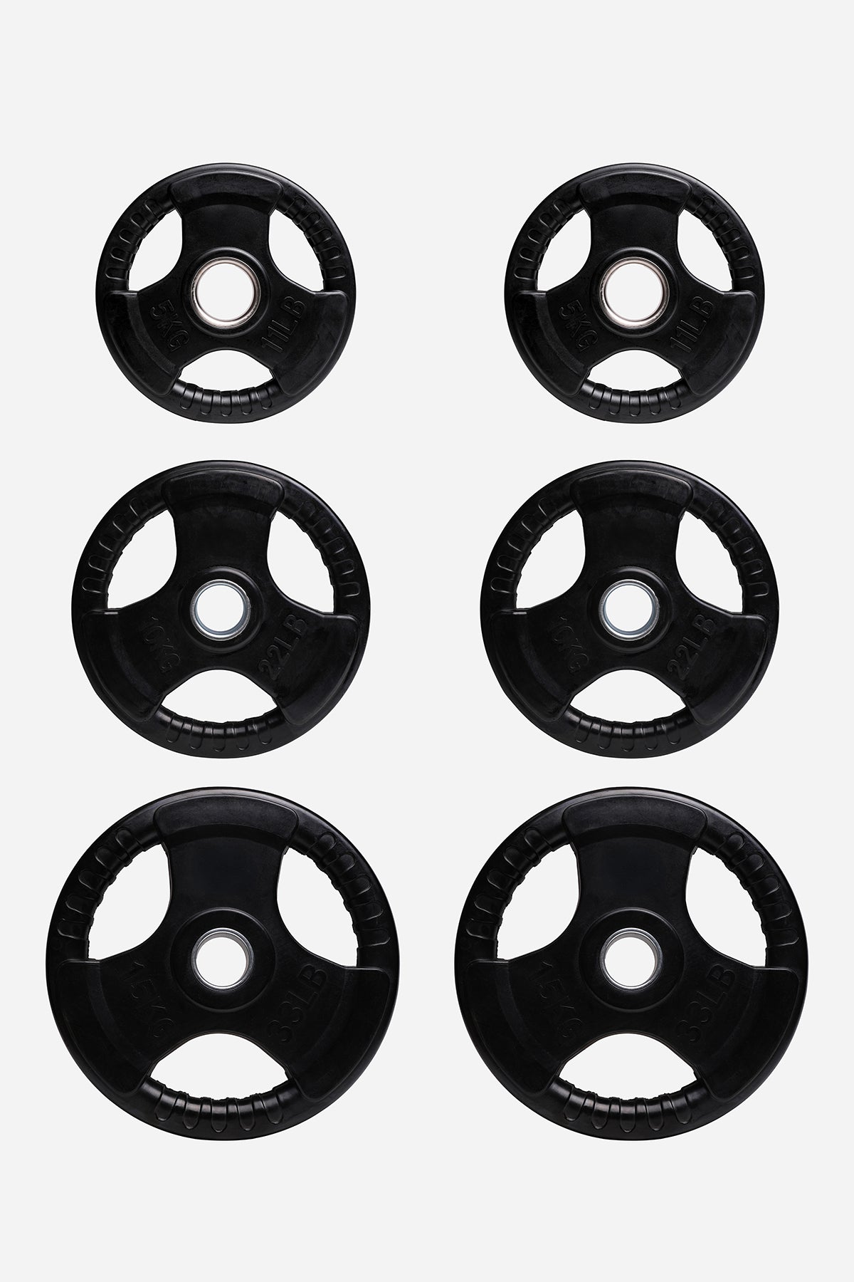 Enhance your weightlifting experience with our Tri-Grip Olympic Weight Plates, designed to bring convenience and versatility to your workouts. The tri-grip design with ergonomic handles allows for easy handling and added stability, providing a comfortable and secure grip during exercises. Made from durable materials, these weight plates are built to last and are suitable for both home and professional gym settings. With their compatibility with Olympic size barbells, clear weight markings, and a wide range of weight options, these plates offer the flexibility to customize your workout and achieve your fitness goals. Elevate your weightlifting routine with our Tri-Grip Olympic Weight Plates and experience a new level of performance and convenience.