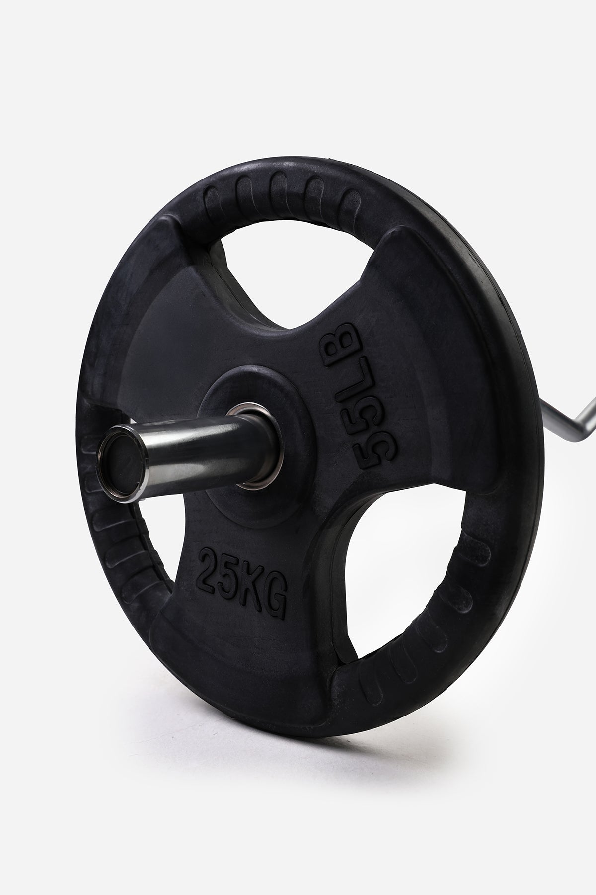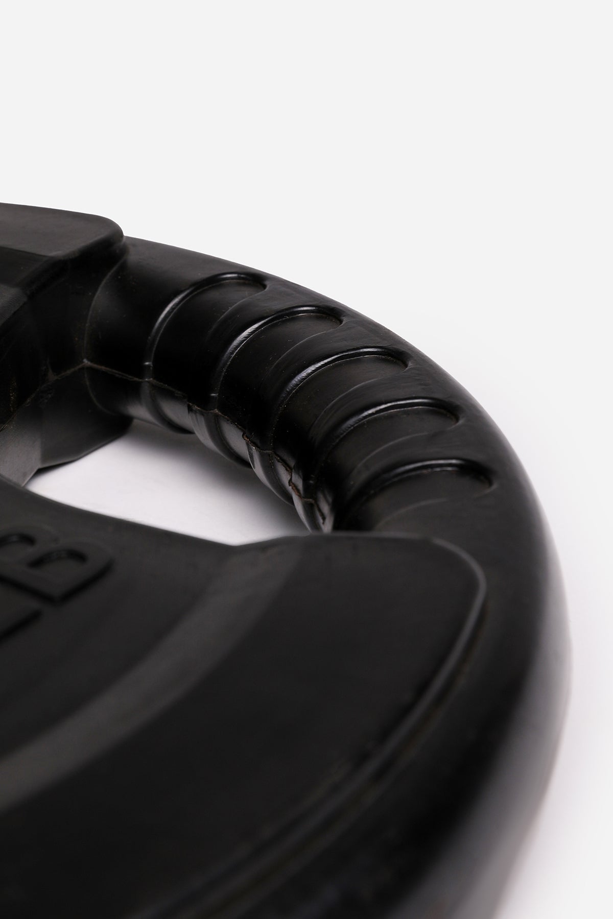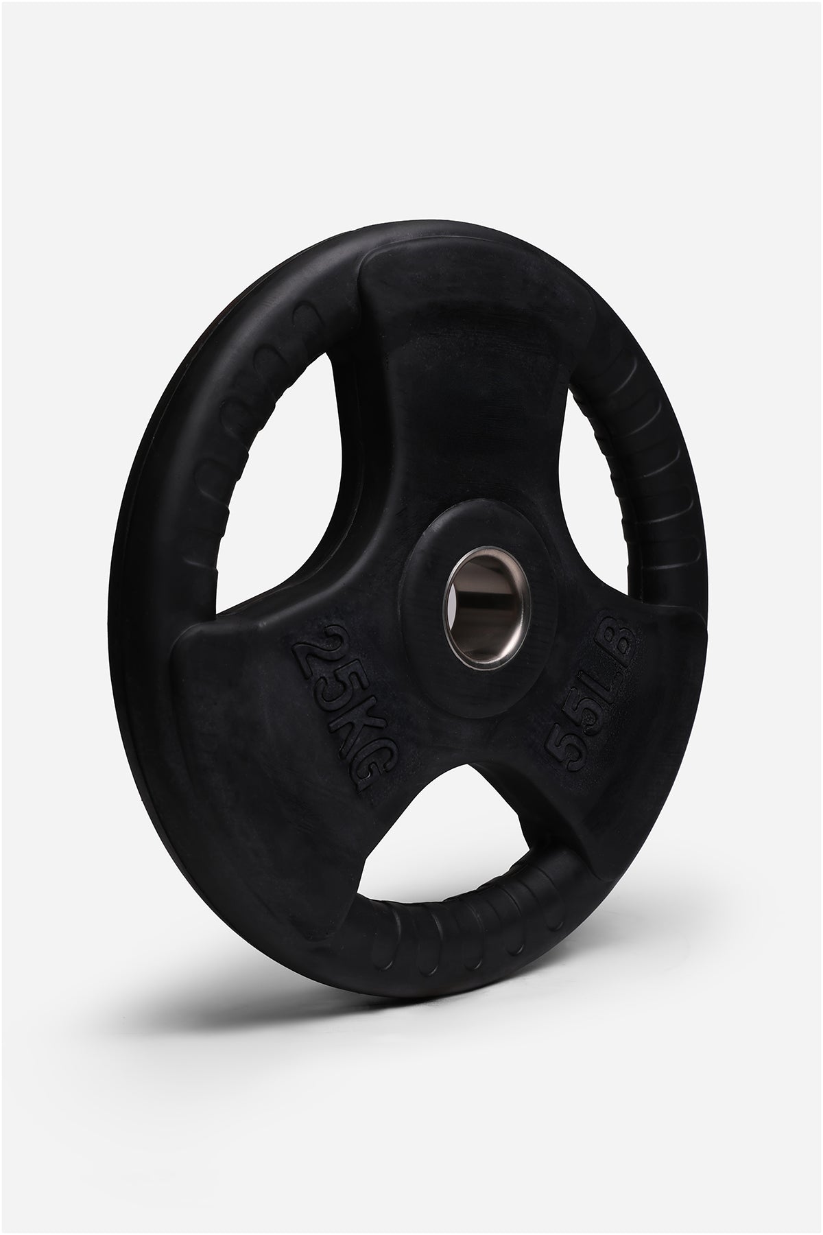 Tri-Grip Design: Our Tri-Grip Olympic Weight Plates are made from cast iron with a black rubber encasing. Features a unique tri-grip design with ergonomic handles. These handles allow for easy and secure handling of the plates, enabling you to quickly load and unload them from the barbell. The tri-grip design also provides increased stability and control during exercises, enhancing your overall lifting experience.