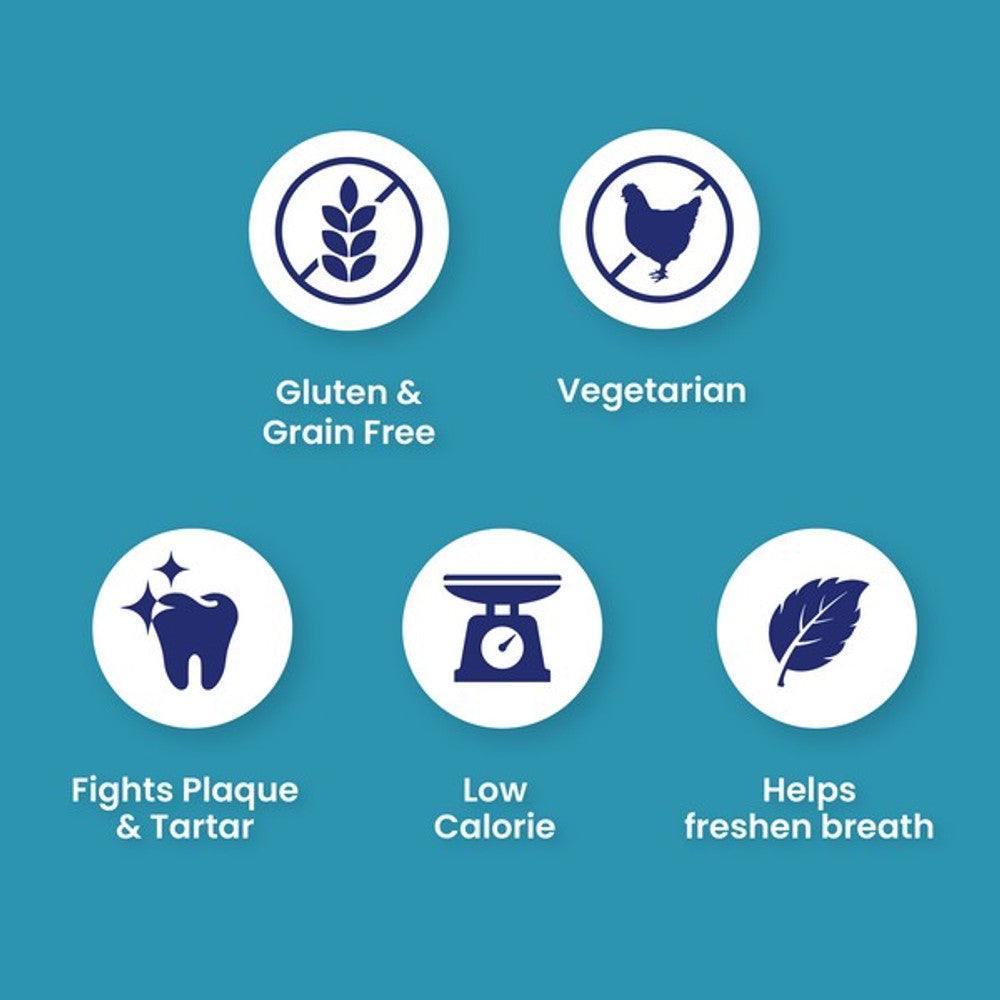 Petello Nobblys dental dog chews are natural vegetarian chews. Each chew promotes dental health by helping to reduce tartar build-up thanks to its unique shape and nobbles! Each treat is also gluten and grain free as well as low fat, making it a great complementary dental treat for dogs with or without special diets.