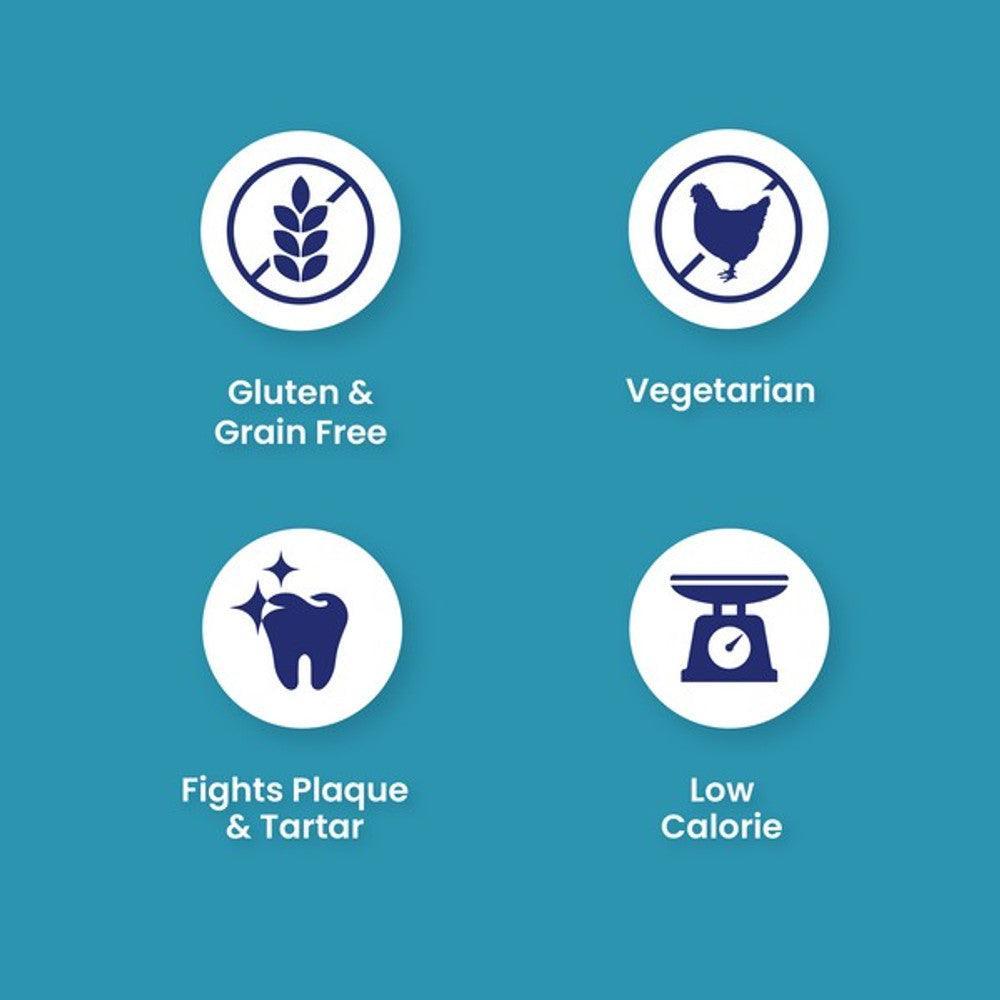 Petello Nobblys dental dog chews are natural vegetarian chews. Each chew promotes dental health by helping to reduce tartar build-up thanks to its unique shape and nobbles! Each treat is also gluten and grain free as well as low fat, making it a great complementary dental treat for dogs with or without special diets.