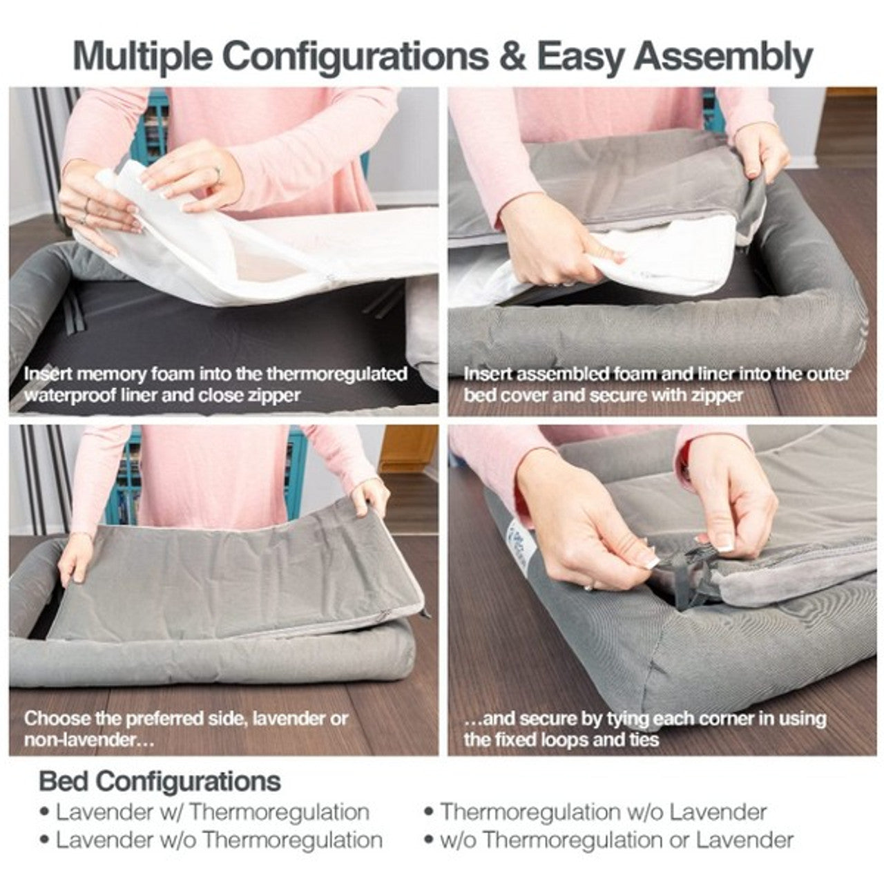 - MULTIPLE CONFIGURATIONS: One side of the inner white liner has Thermoregulation, face the tag up when you want to use it or face down when not desired. Lavender is infused on the ultra-cosy side of the outer bed cover only, face up when you want to use it or face down when not desired