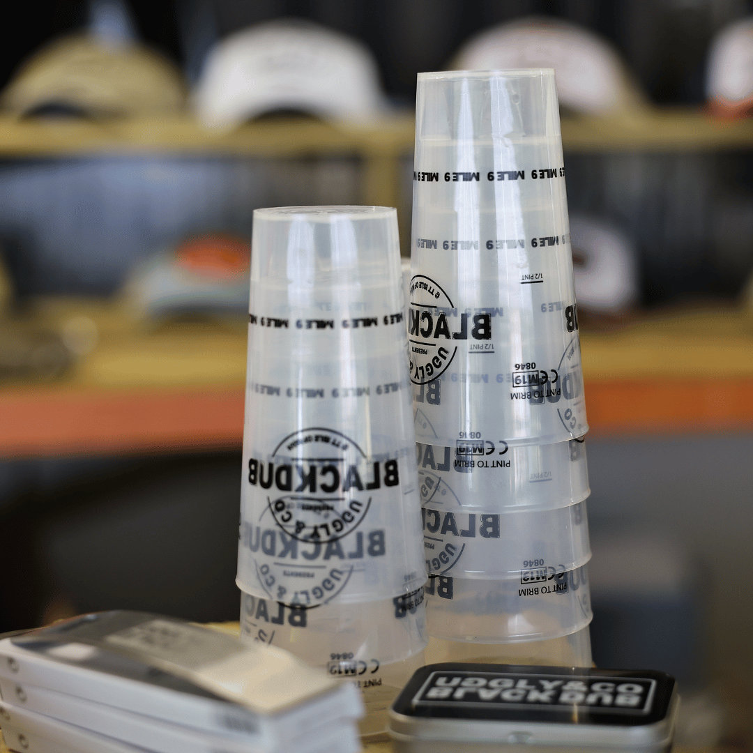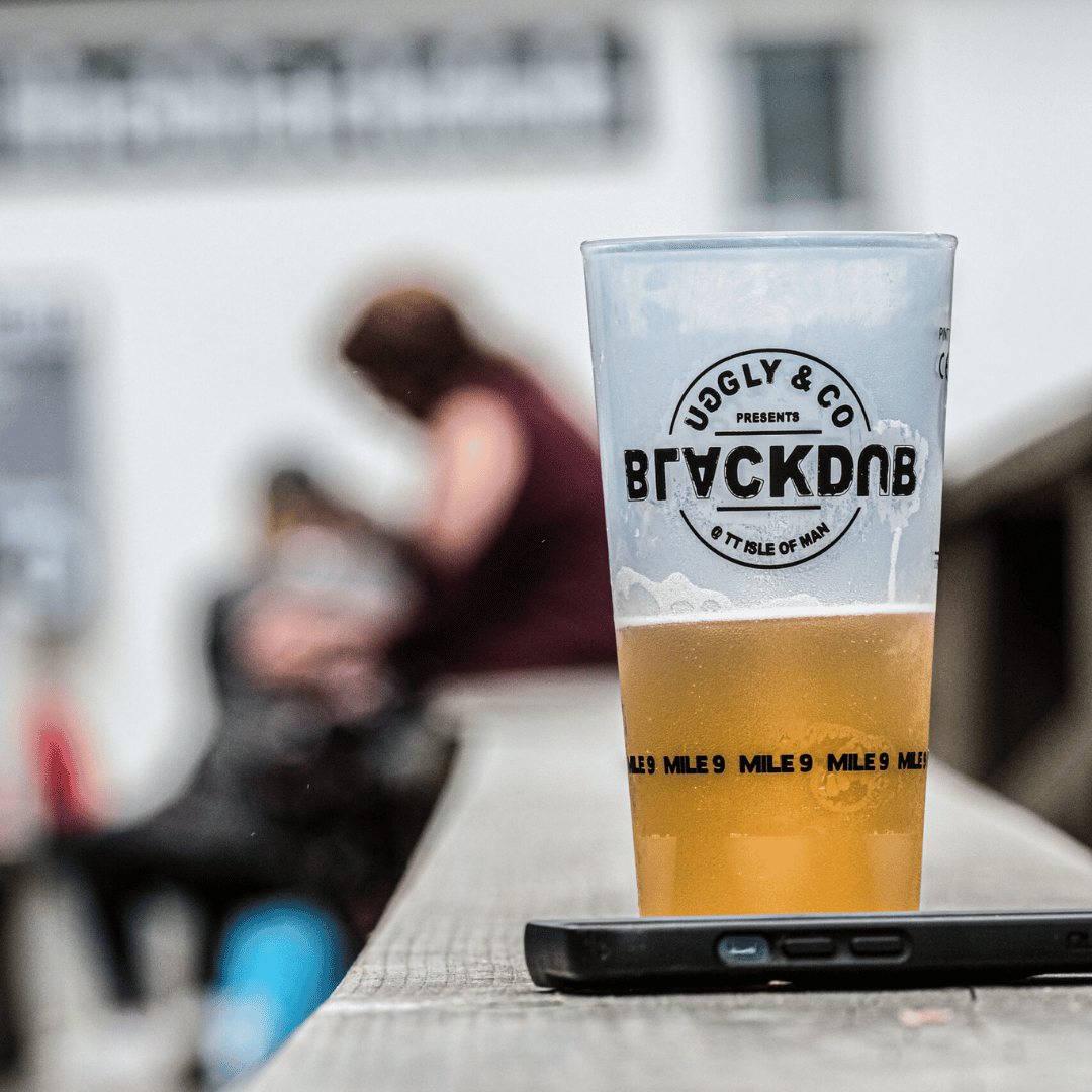 The Black Dub ‘Pint Cup’. Perfect memorabilia from Mile 9! You may have seen this plastic pint cup at the trackside bars at the Black Dub! Serve up a pint, or a couple: for yourself at home with this one off Black Dub, Mile 9 pint cup!