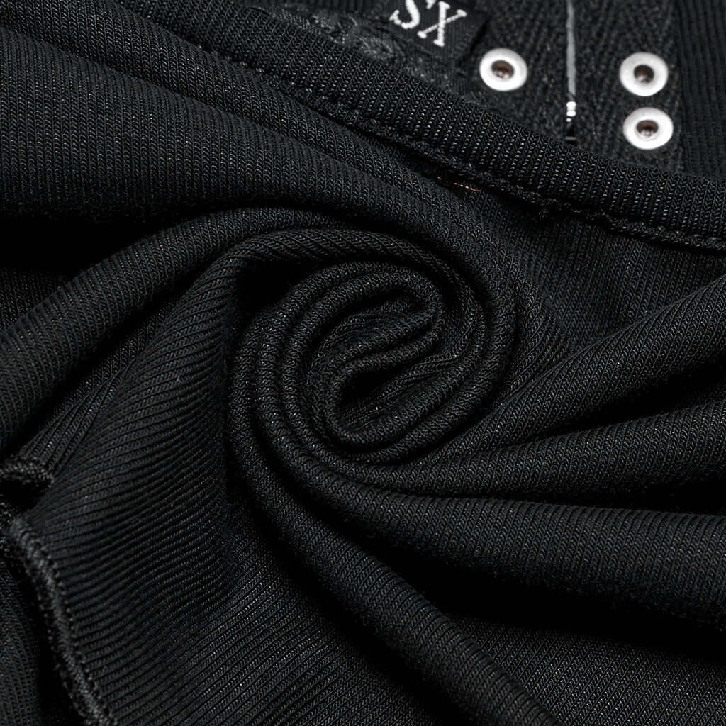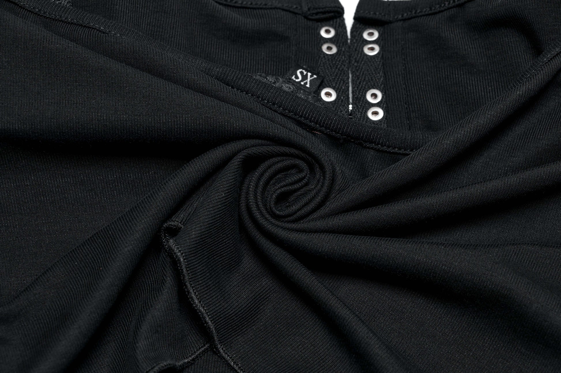 Go full gothic wench and out from the crowd with the Punk Rave Clarabelle Wenchy Halterneck top. Embrace the distressed look frills and off the shoulder long sleeves with drapey cuffs. With a tie up halterneck and feature hook and eye front, this top is perfect for anyone looking for a unique and playful style.