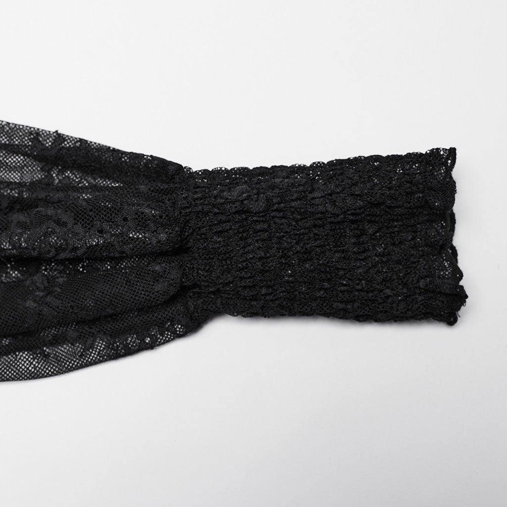 Dazzle in our Punk Rave Demille Sequinned Lace Blouse! Crafted with elastic lace and mesh for a comfortable, loose fit. The 3D U-shaped decal and sequin pleated lace add a touch of elegance. With custom buttons and lantern sleeves, it's both luxurious and easy to wear.