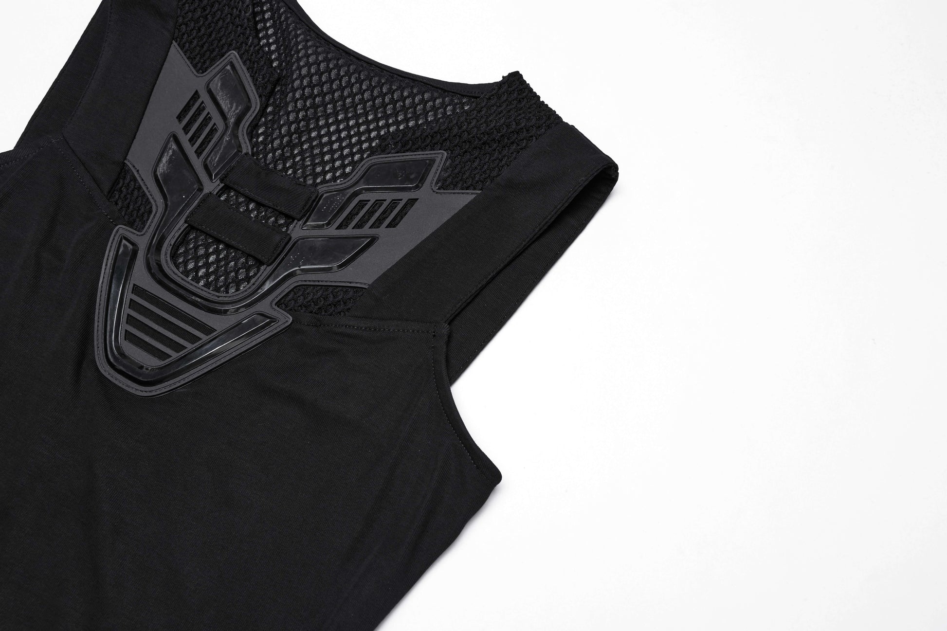Experience the future of fashion with our Punk Rave Ellerie Cyberpunk vest! This playful sleeveless number combines soft elastic knit fabric with mesh for ultimate comfort. The showstopper? A 3D vinyl armor patch in an inverted triangle that screams avant-garde vibes. Ready to turn heads and embrace your inner cyberpunk warrior!