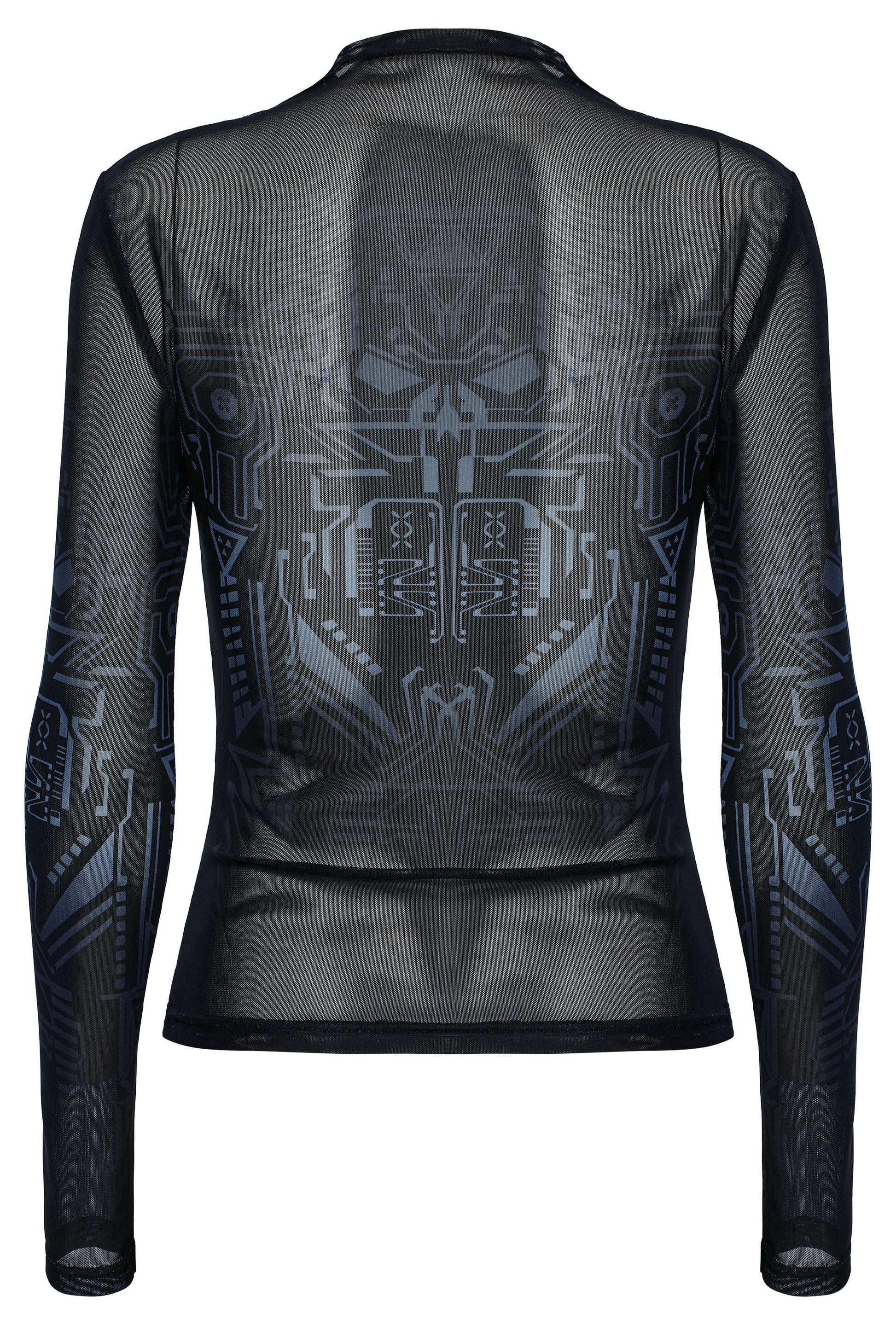 Punk Rave Eluana Cybergoth Print Mesh Long Sleeve Top