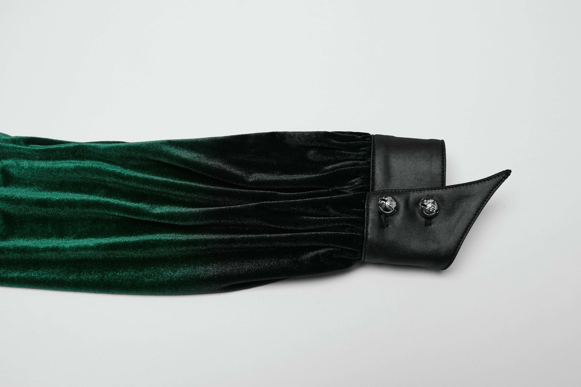 This Punk Rave Fawn Gradient Printed Shirt in Green is made of soft and elastic velvet, providing ultimate comfort. The gradient design highlights feminine lines while the bat collar and cuffs add a touch of design. The exquisite carved floral patterns and ruffled edges add texture and details. Plus, the adjustable waist allows for a customizable fit.