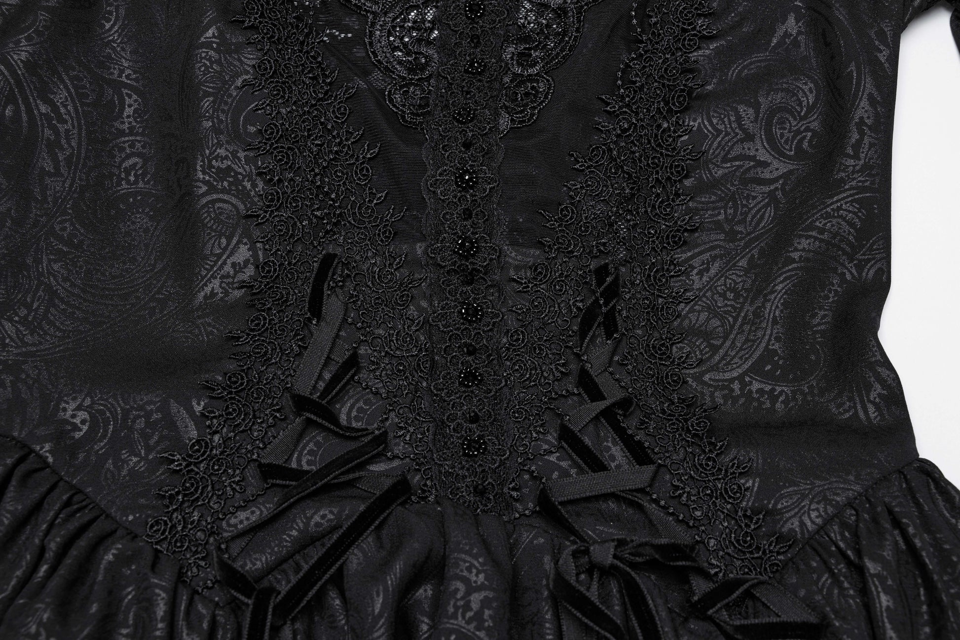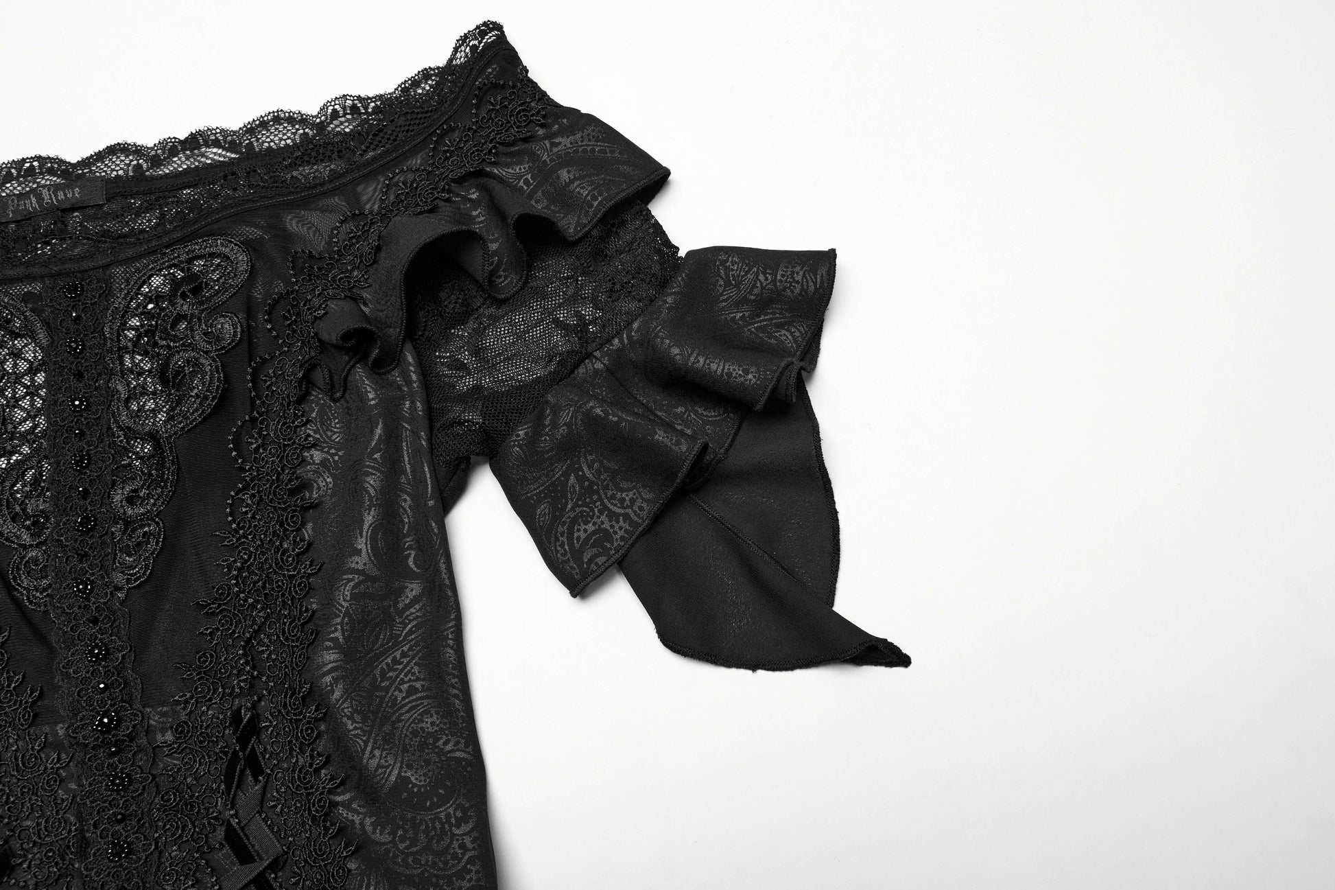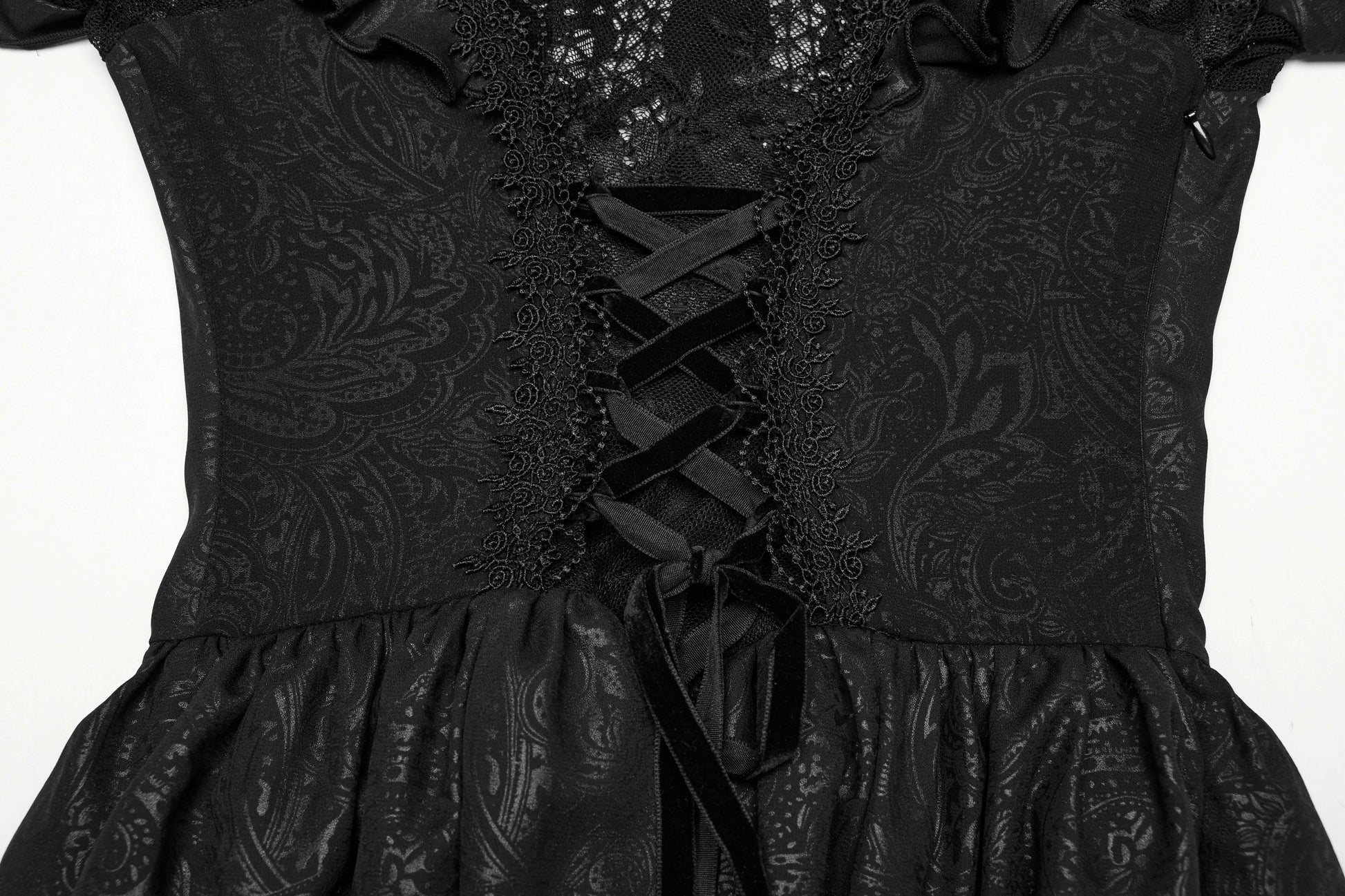 Dance between realms in our Punk Rave Jezebel Elf Off Shoulder Dress! Crafted from a magical blend of printed chiffon, elastic lace, and mesh fabric, this dress brings fantasy to life. The playful off-shoulder design and ruffled sleeves add a touch of mischief, while hollow applique and intricate lace details create an enchanting focal point. With its figure-flattering high-low hemline and adjustable back drawstring, you'll look wickedly wonderful from any angle. Perfect for those who dare to stand out!