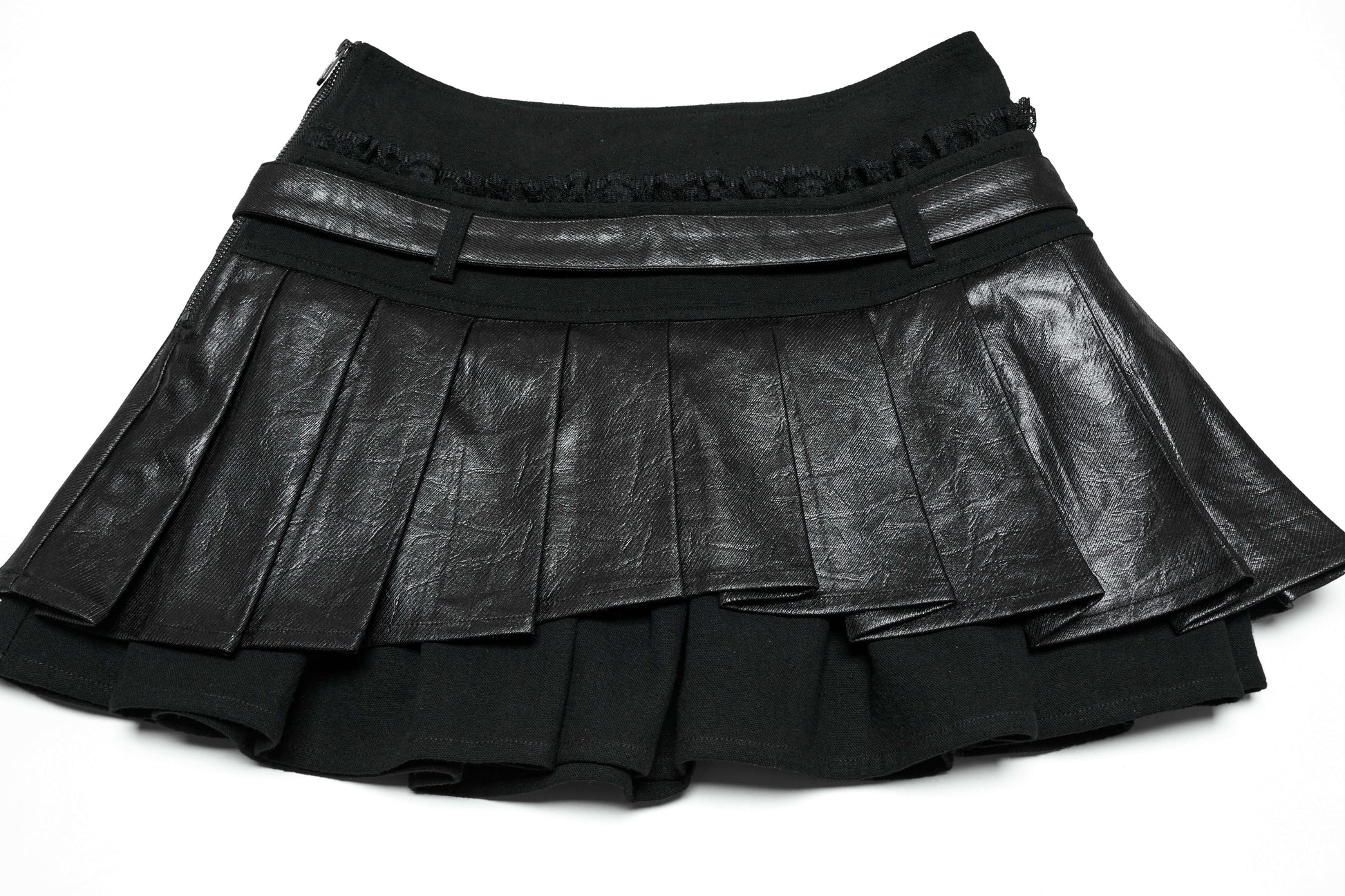 Embrace your rebellious side with the Punk Rave Jianna Pleated Skirt! Made with non-elastic woven fabric and faux twill pressed leather, this skirt is both edgy and comfortable. The ruffled lace and adjustable loop decoration add a unique touch, while the invisible side zipper makes it easy to wear. Get ready to rock n' roll in this sexy, energetic skirt!