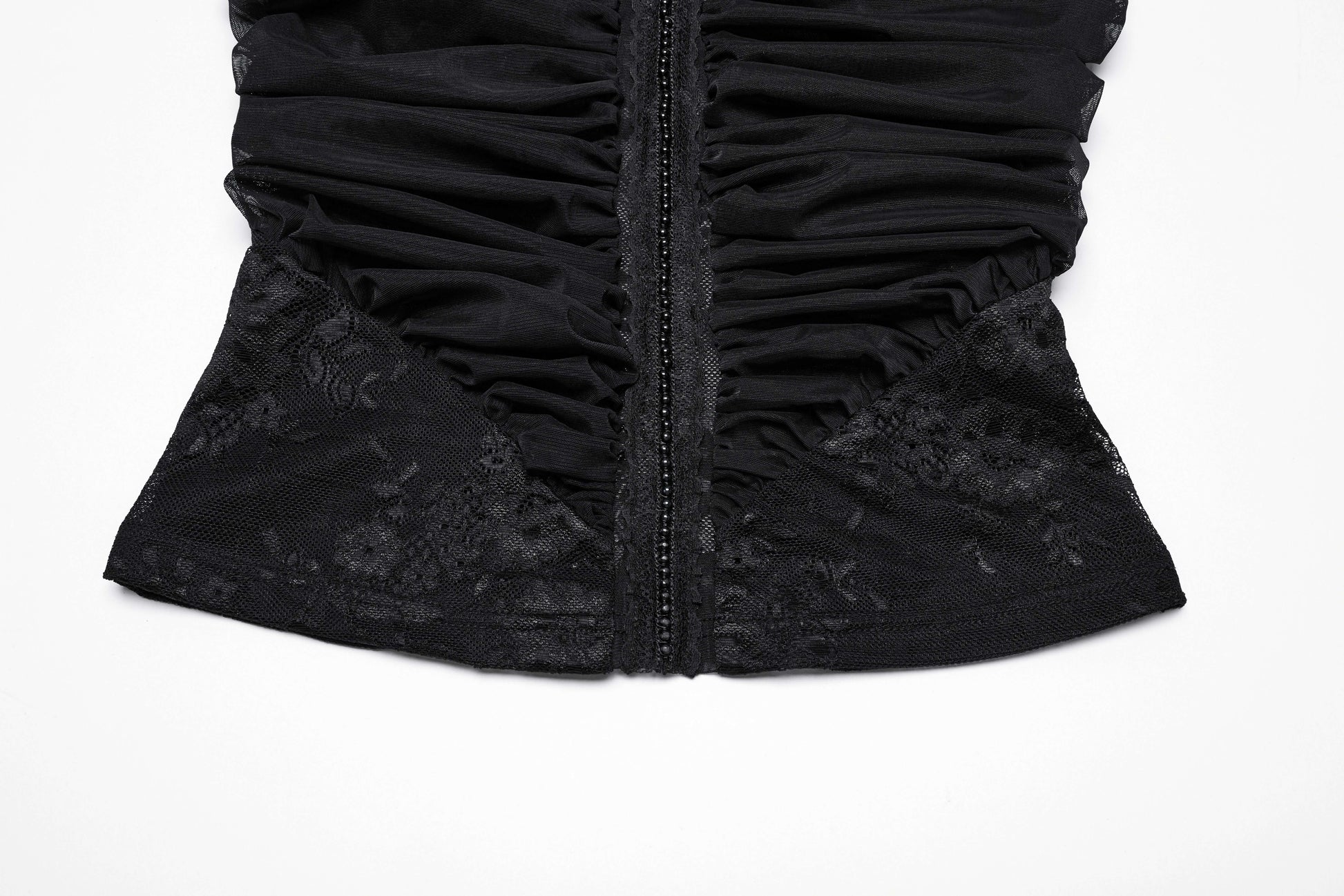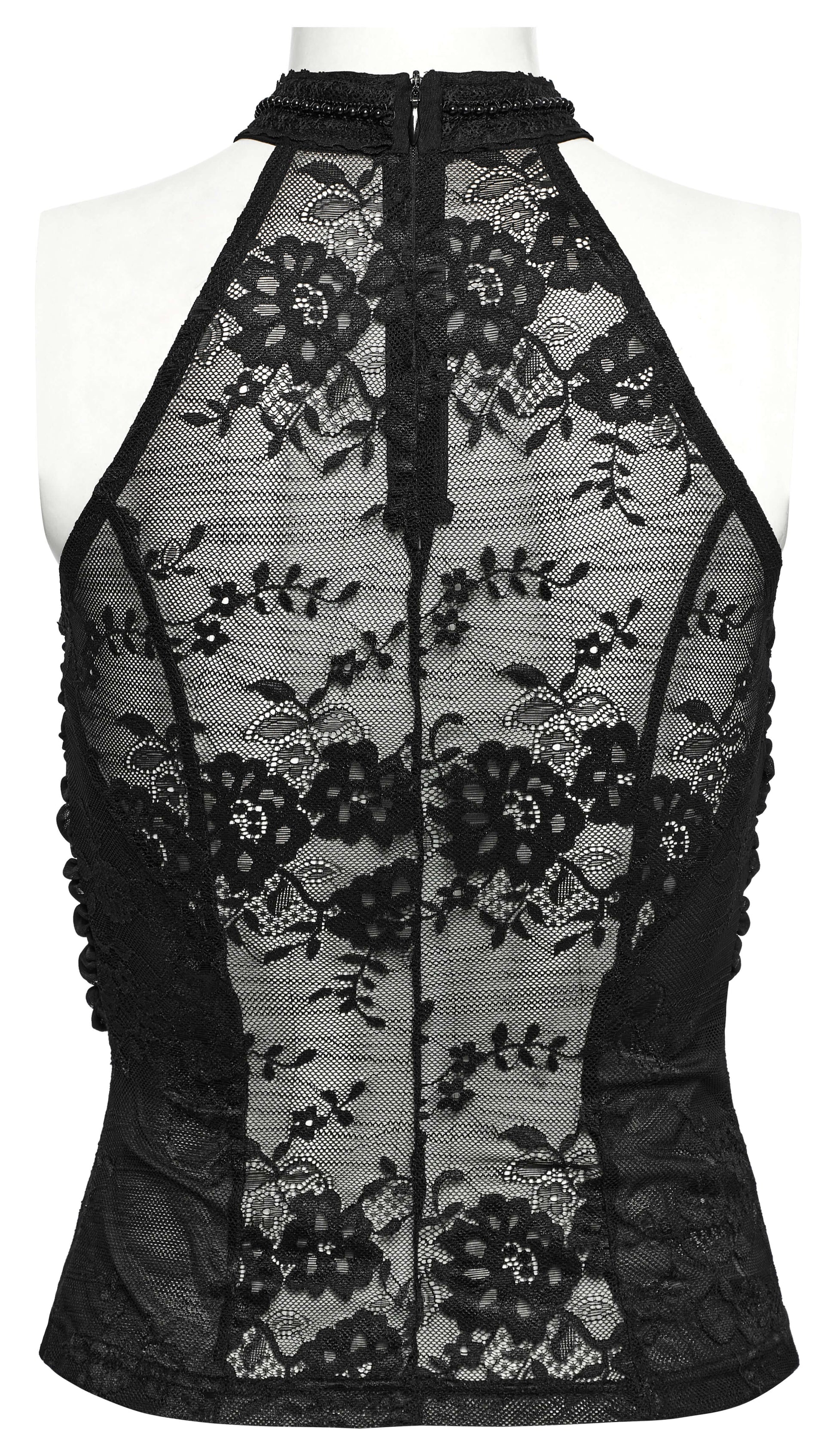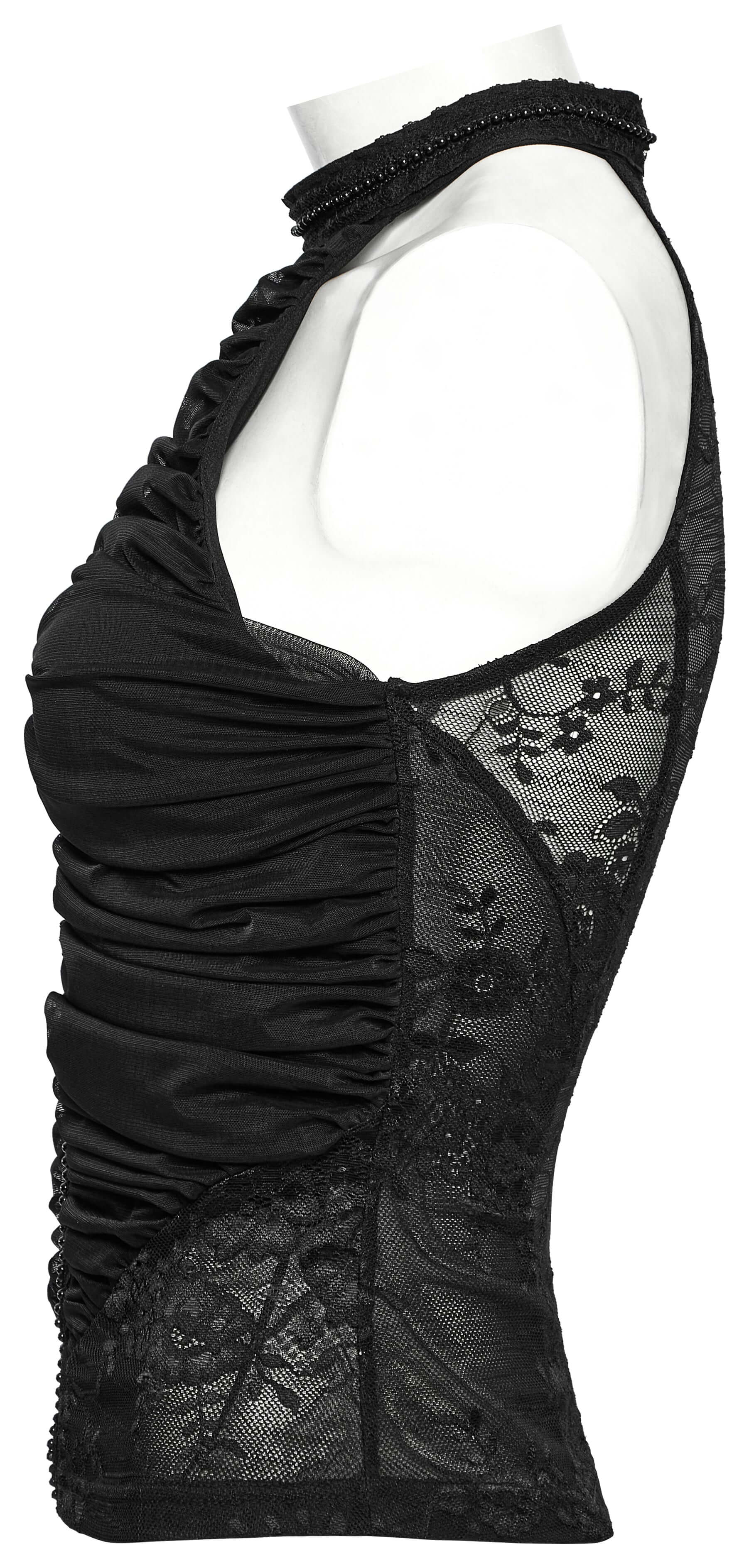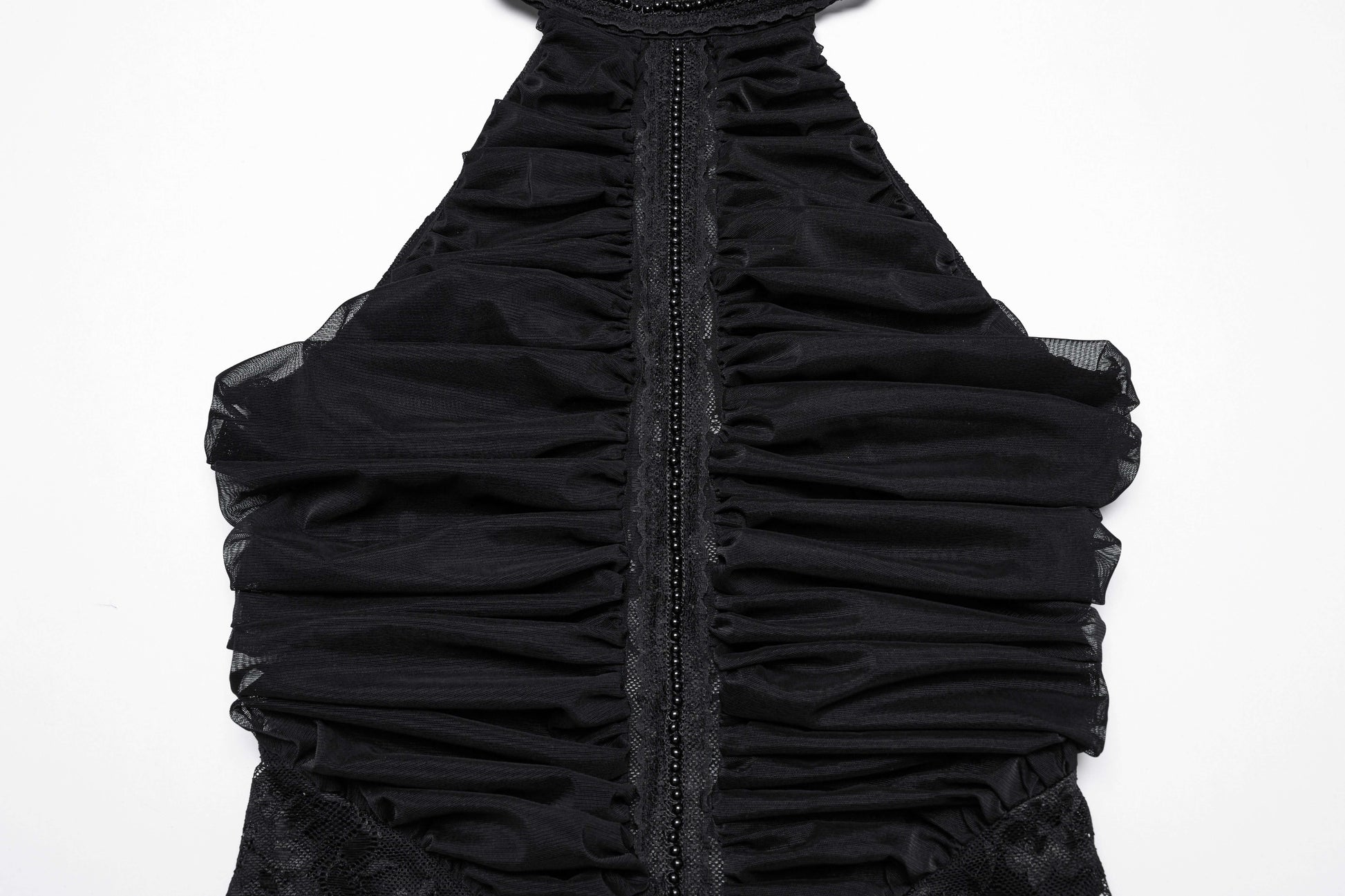 Dance between edgy and elegant in our Punk Rave Kalliope Pleated Halter Neck Top! Crafted from stretchy mesh and lace, this top offers two fabulous hanging styles to match your mood. The decorative lace collar adds a cheeky touch of sophistication, while those chest pleats create a playful 3D effect that's totally eye-catching! Sneaky invisible zipper means you can wiggle in and out without messing up your hair. Ready to turn some heads?