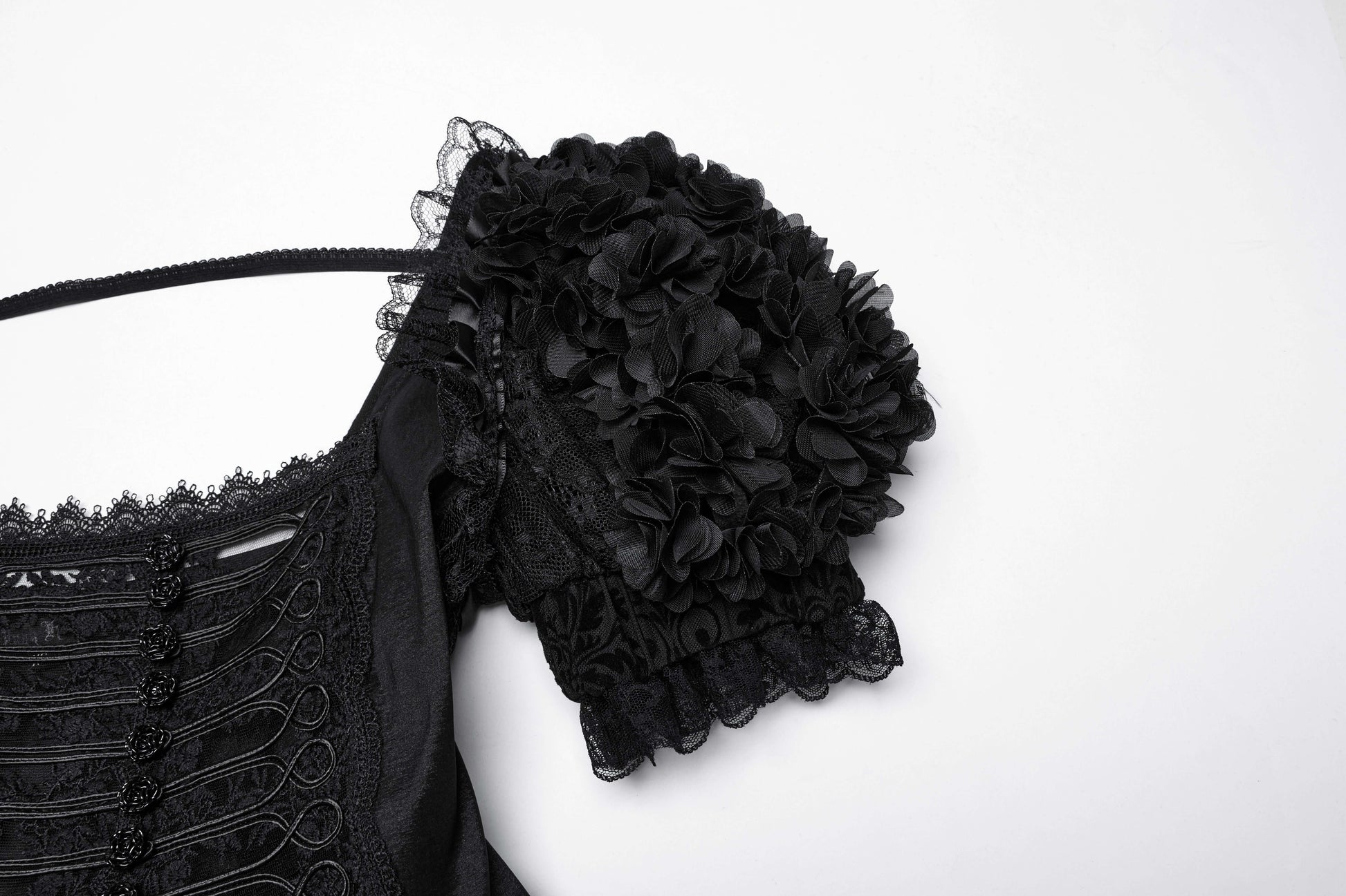 Dive into whimsical elegance with this Punk Rave Lolita dress that's equal parts sweet and cool! The 3D embroidered lace and flocking mesh create a magical look, while the square neckline shows off your neckline with flair. Bubble sleeves blooming with complex flowers add a touch of fantasy, and those adorable rose buttons? Simply charming! The fluffy 3D skirt cinches your waist while the hidden side zipper means no wrestling matches with your outfit. Ready to turn heads and skip through your day feeling fabulous!