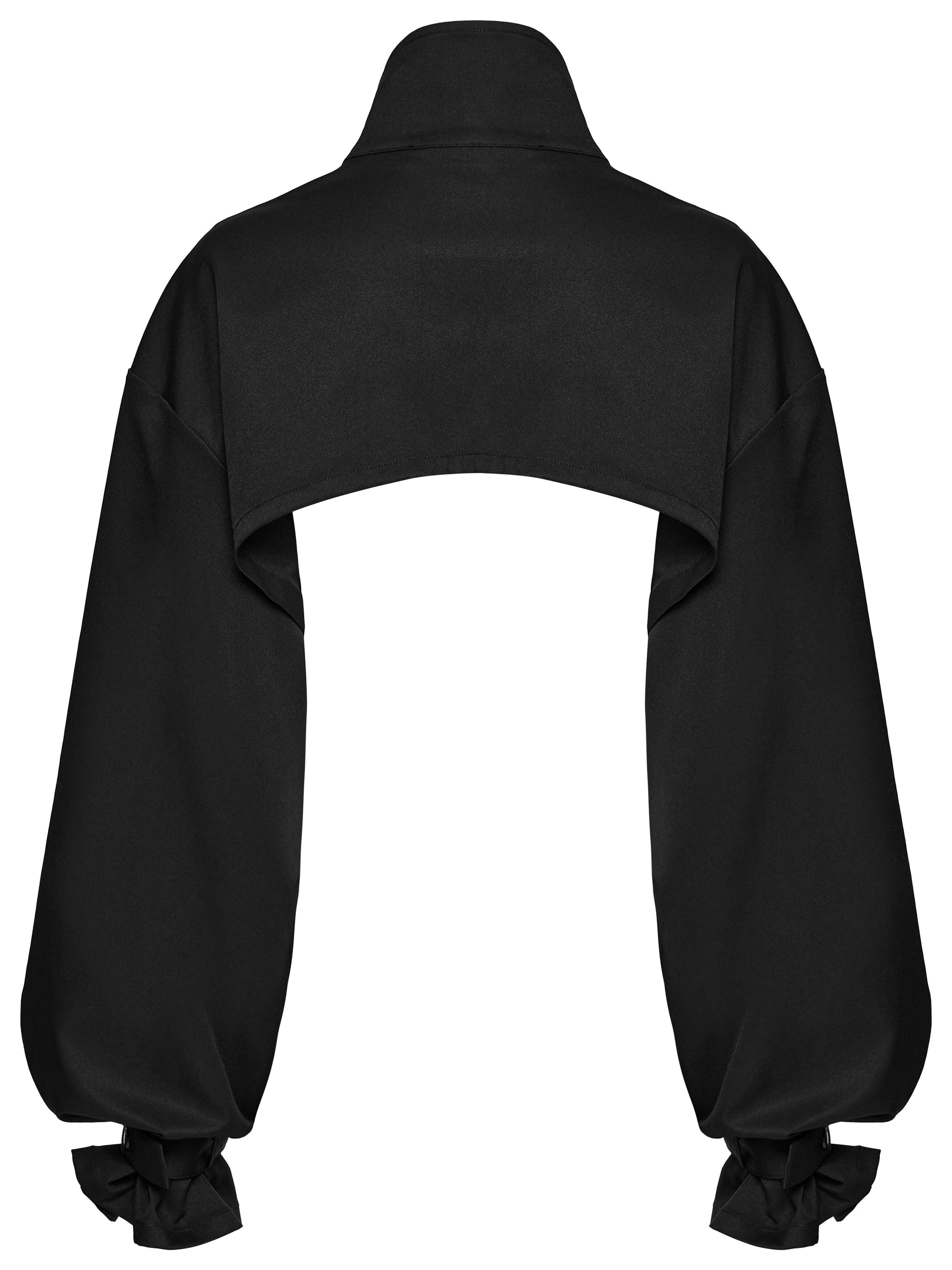 Add a touch of punk to your wardrobe with the Punk Rave McKay Short Jacket. Made of comfortable and textured twill woven fabric, this cool and functional ultra short jacket features a personalized metal loop on the shoulders with a detachable long ribbon at the bottom. The adjustable cuffs allow for a customizable fit. Available in black.