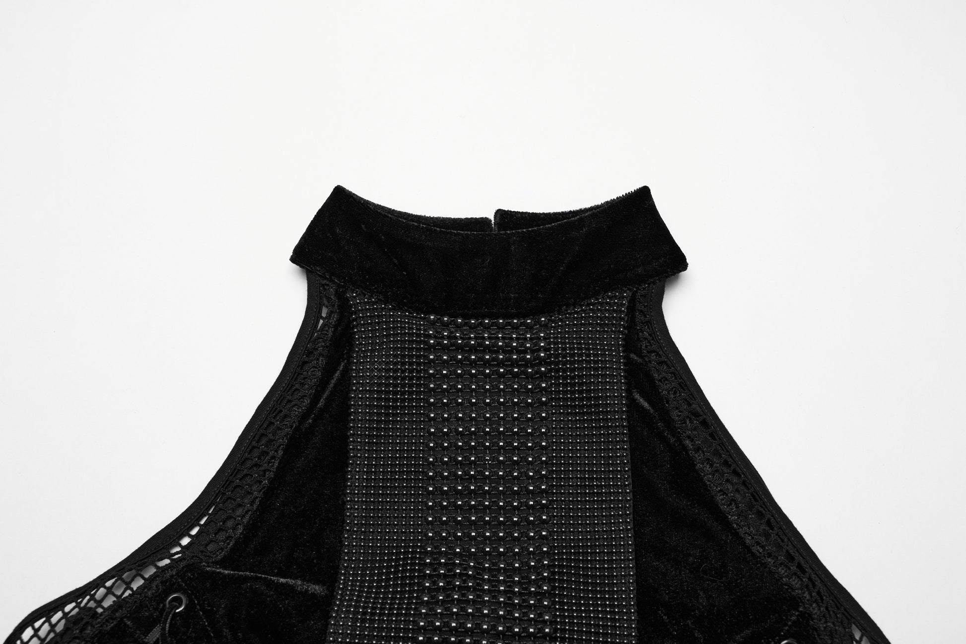 - Soft elastic velvet with sheer mesh splicing