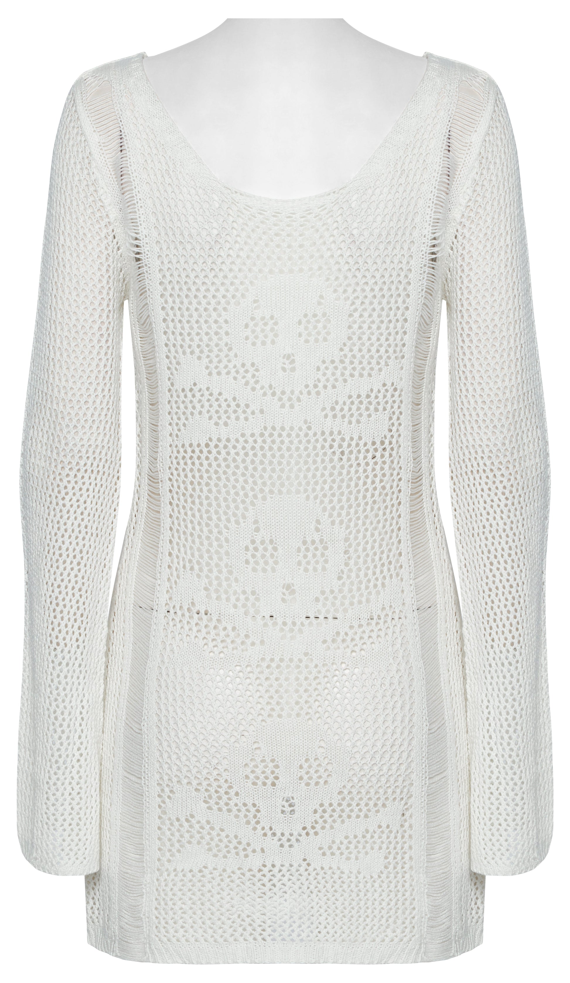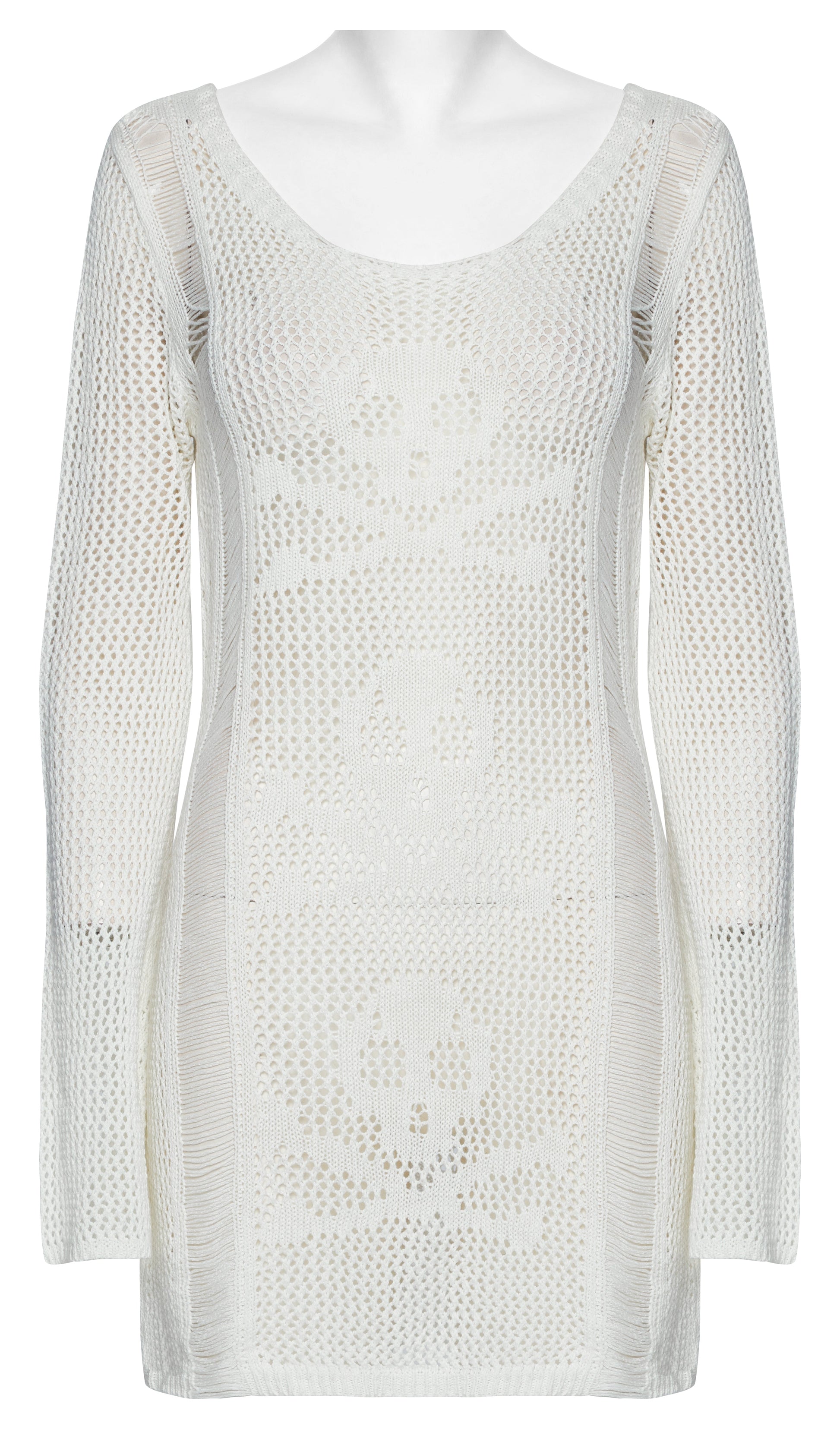 Punk Rave Teuta Skull and Crossed Bones Knitted Mesh Dress in White