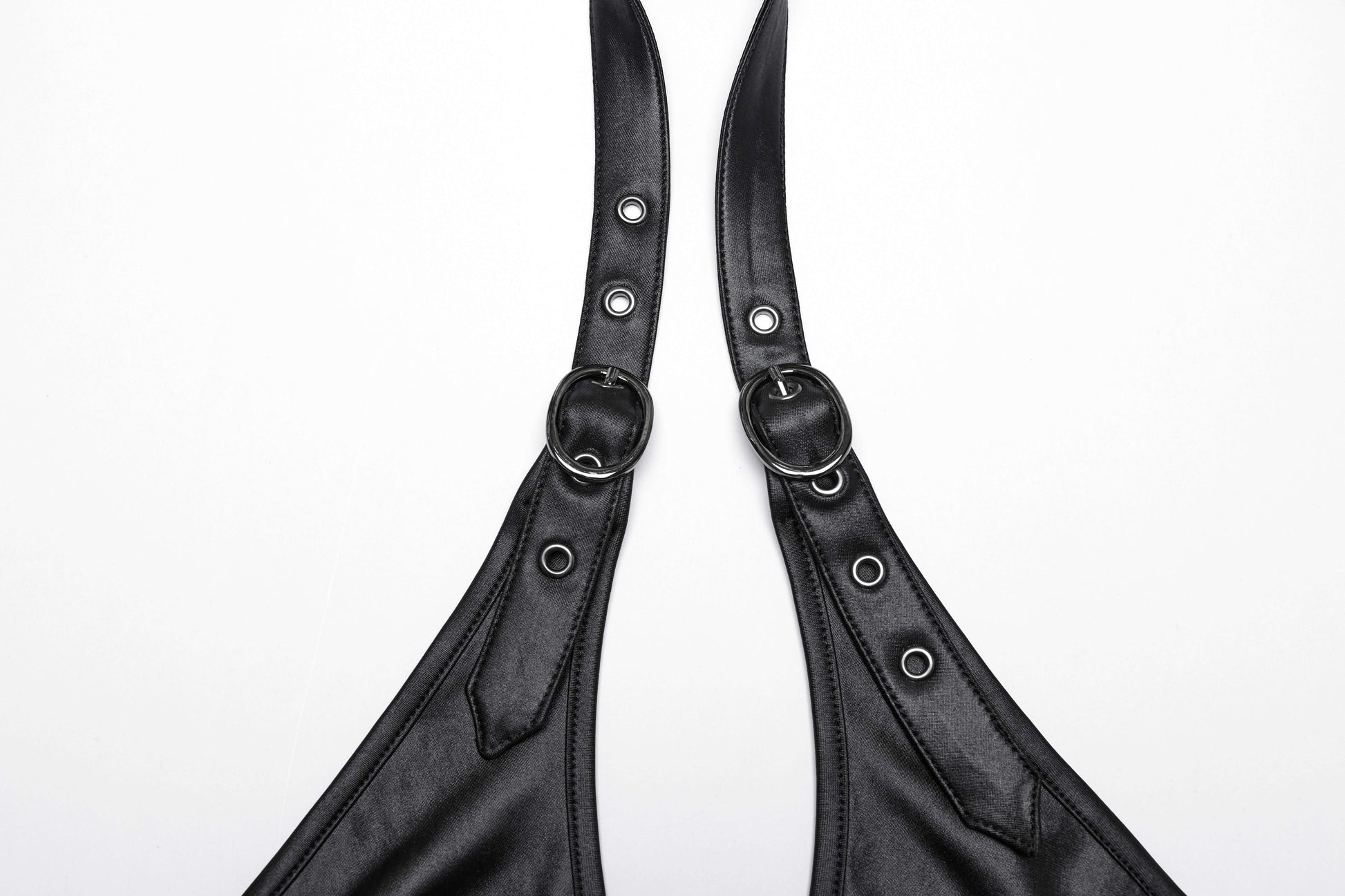 Dance between rebellion and elegance in the Punk Rave Tirza dress! Crafted from stretchy rubberized knit fabric with playful chiffon and mesh accents. The eye-popping hollow chest design guarantees you'll be the center of attention, while two halter styling options let you switch up your look on a whim. With a flirty, graceful chiffon hem that swishes with every step, this dress brings the perfect punk attitude with a mischievous twist!
