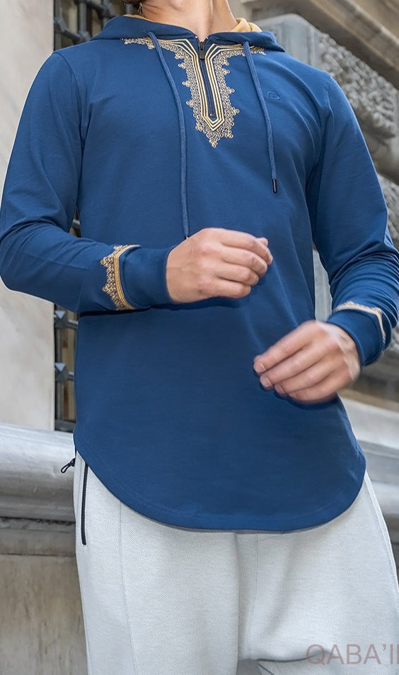 Elevate your style with QL Longline Etniz Sweat MA! These hoodies have the perfect blend of comfort and athletic fashion style. Designed with an embroidered Moroccan inspired traditional patterns that add a classic but trendy finish to avoid looking frumpy and dull. Perfect for hanging out with friends, working out, or running errands. Leaving you look stylish and keeping you warm, you can’t go wrong with these hoodies!