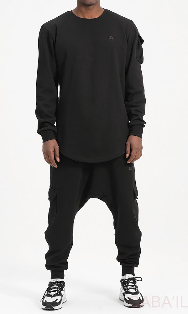 QL Sniper Set Cargo Joggers and Longline Top in Black