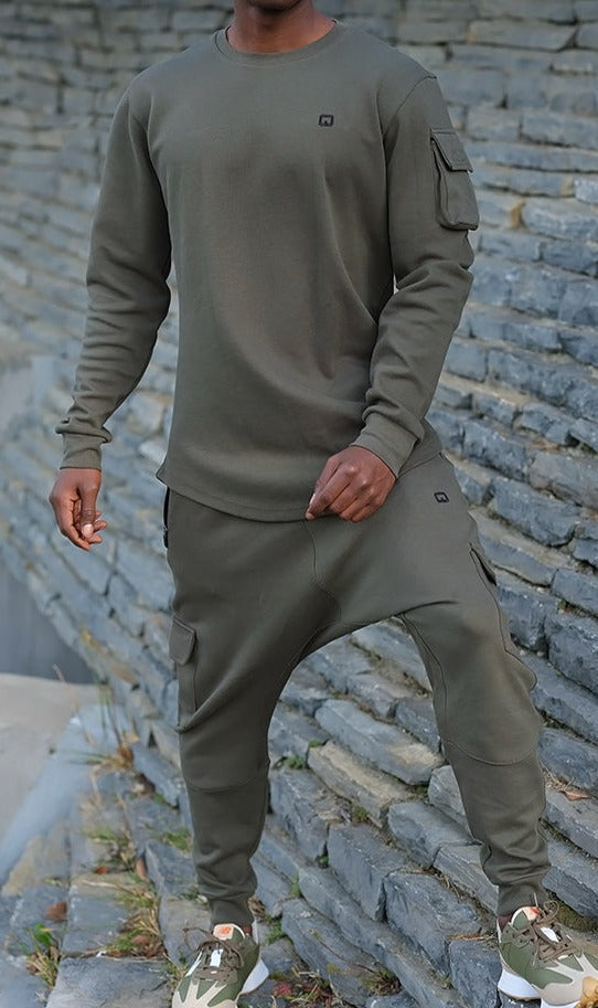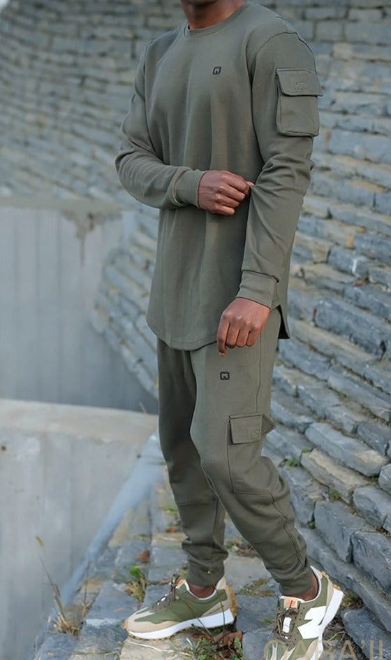 QL Sniper Set Cargo Joggers and Longline Top in Khaki