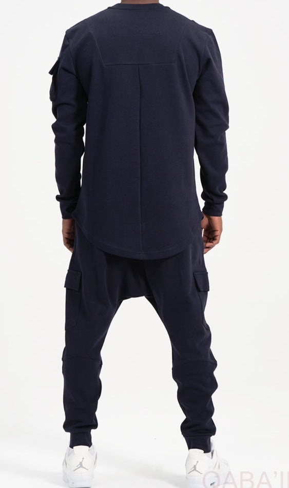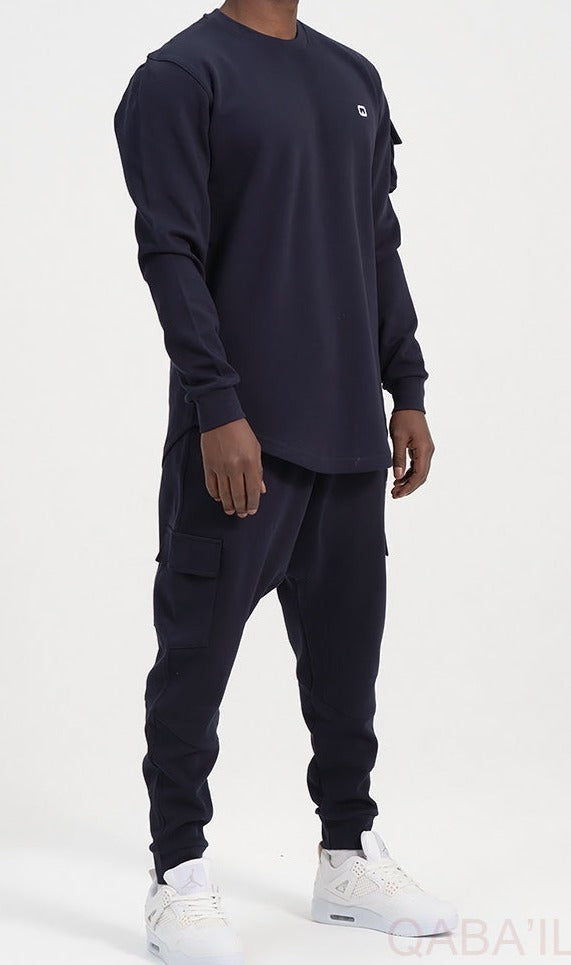 QL Sniper Set Cargo Joggers and Longline Top in Navy Blue