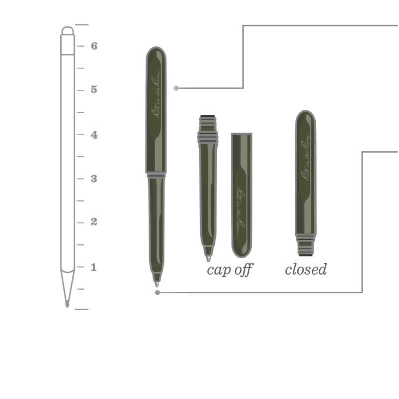 - Cap snaps securely onto end of pen creating a comfortable standard-size barrel.