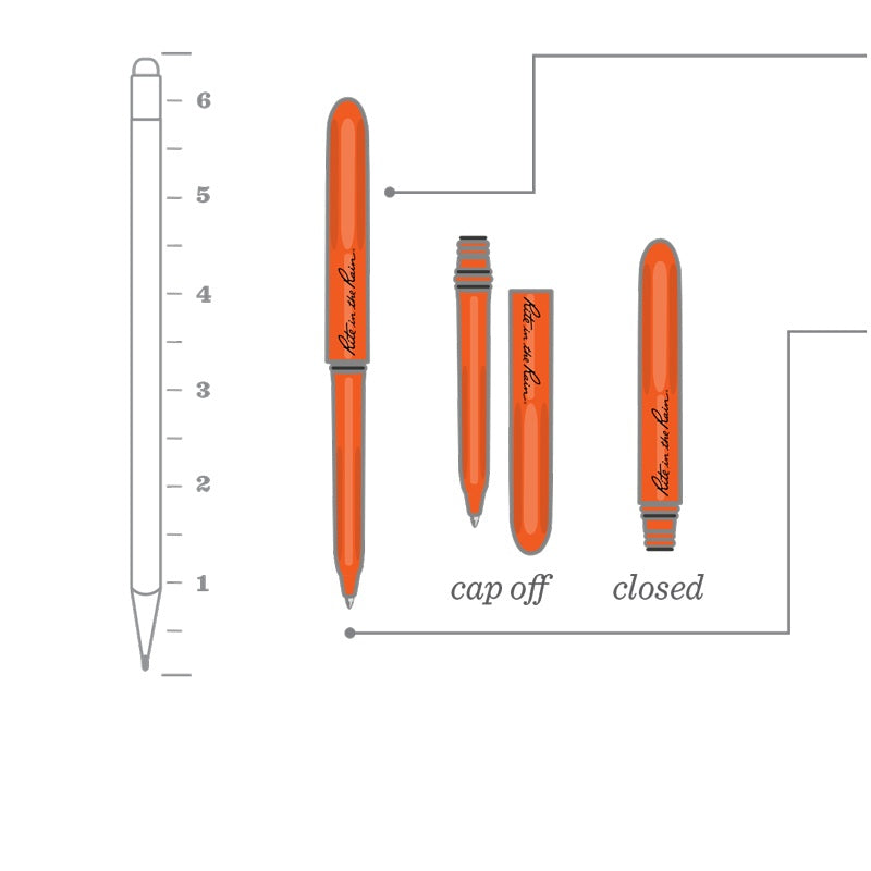 - Cap snaps securely onto end of pen creating a comfortable standard-size barrel.