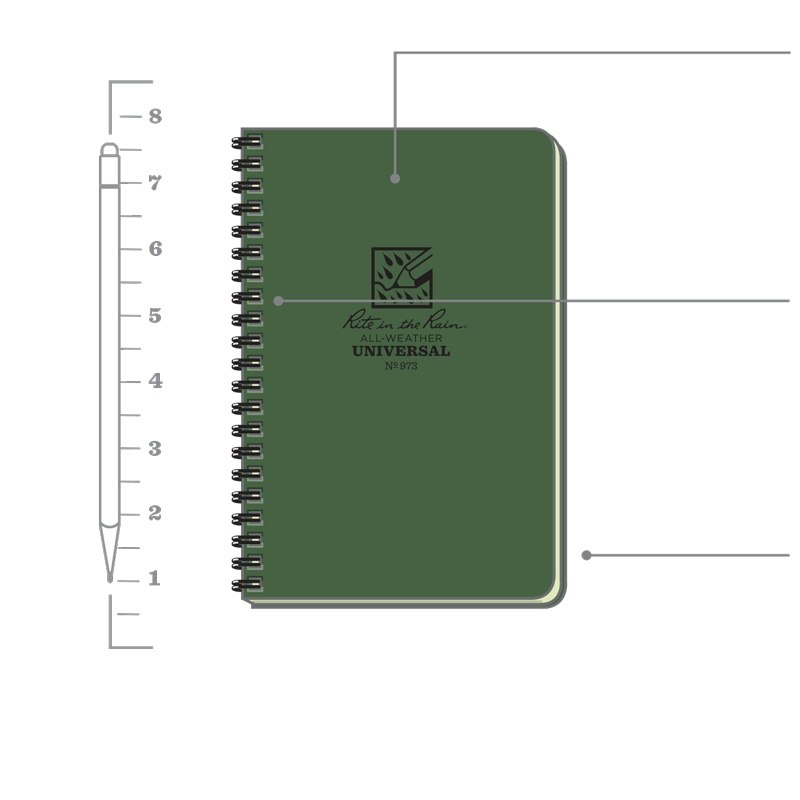 Rite in The Rain Side Spiral Notebook No.973 - Green 4⅝" x 7"