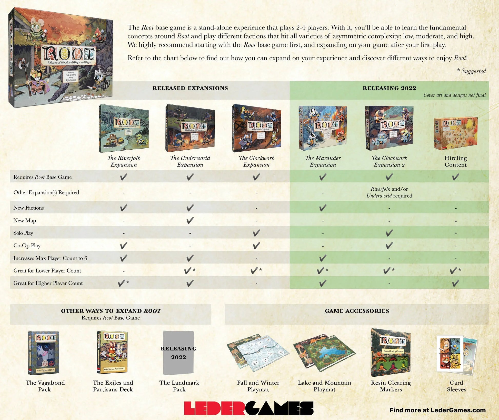 Meanwhile, at the edge of the region, the proud, squabbling Eyrie have found a new commander who they hope will lead their faction to resume their ancient birthright. The stage is set for a contest that will decide the fate of the great woodland. It is up to the players to decide which group will ultimately take root.