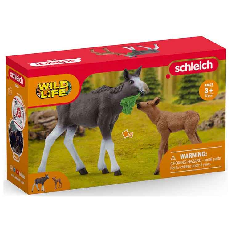 The stately moose cow cares lovingly for her little calf. She suckles it several times a day. To keep her strength up, the mom needs to eat plenty of fresh grass. In search of a lush meadow, she stretches her long muzzle into the air and sniffs. When she gets the scent of some juicy grass, she strides off with big steps ahead through the forest with her calf following behind.