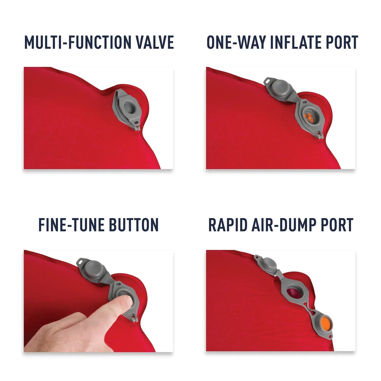 - Flip-over multi-function valve for fast and easy inflation, deflation and fine-tuning of air pressure.