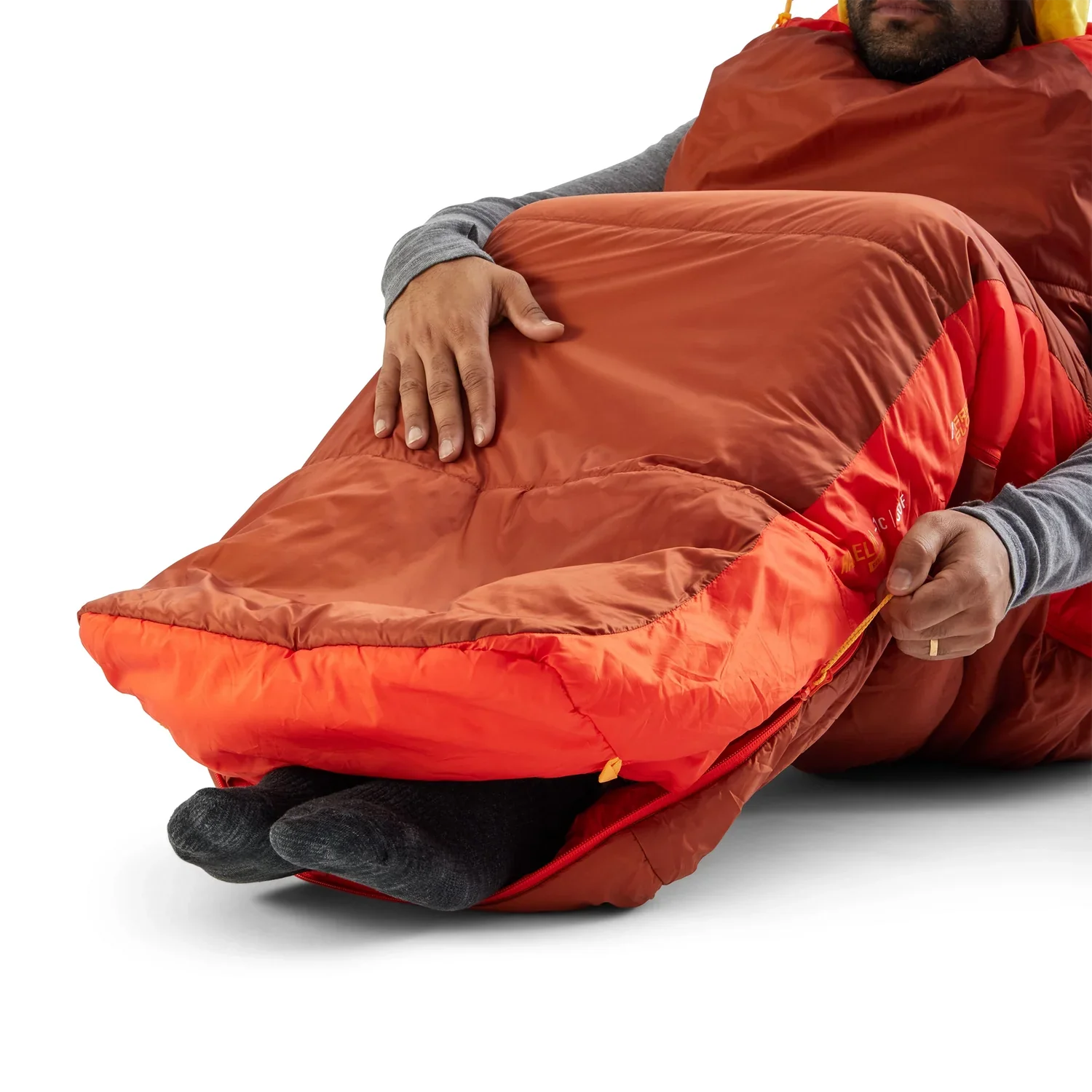 Designed for comfort and performance, the relaxed mummy fit offers plenty of room to move. The full-length side zipper extends throughout the foot box, along with a half-length zipper on the opposite side it provides ventilation and versatility.
