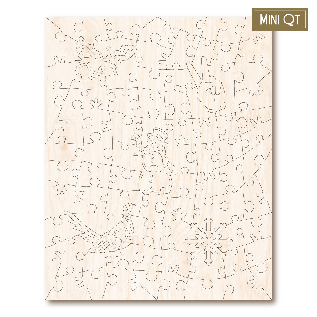 Our MINI QT puzzles are laser cut from thick, 4mm plywood and include 5 whimsies - they make a great puzzle snack!