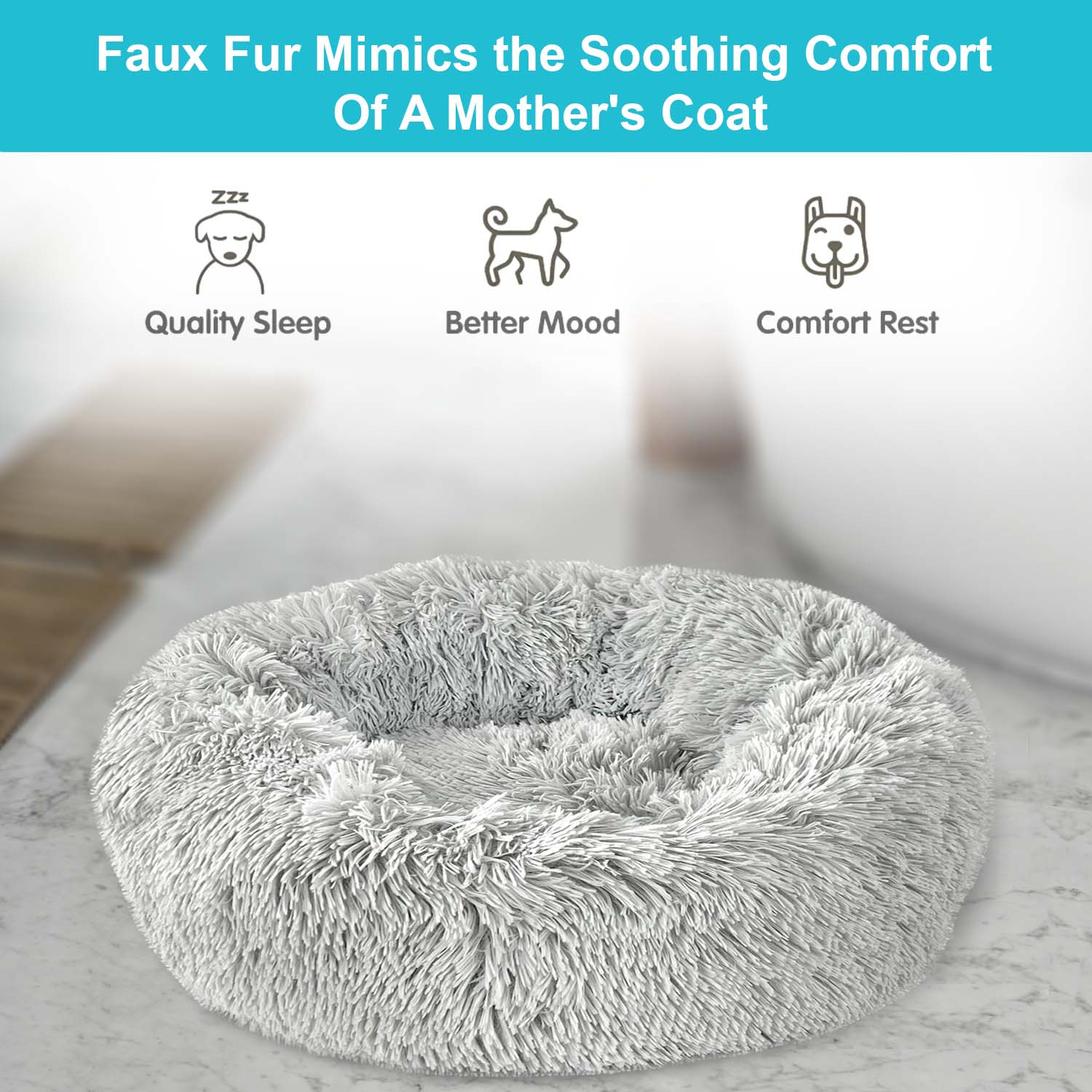 This comfortable pet bed is made of soft plush which can keep your pet self-warming and comfortable in cold weather. With its unique donut shape and plush materials, this bed offers a warm and inviting space for your furry friend to relax and unwind. The Soft Bed for Pets with a Donut Design offers a combination of comfort, support, and style for your furry companion.