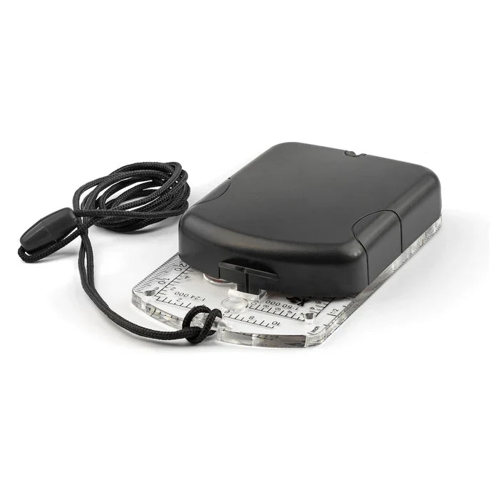 - Sighting Mirror – Allows for precise bearings and doubles as an emergency signal mirror.