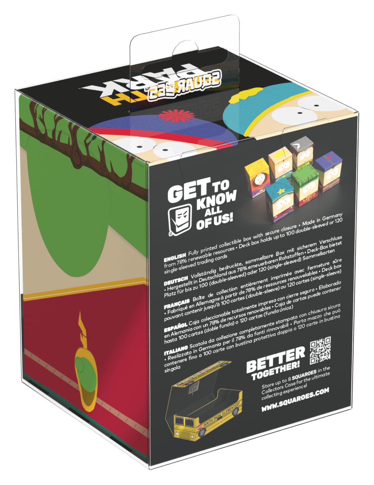 Collectible box for storing TCG decks, tabletop gaming accessories, and/or collectibles. The Stan Squaroe from the South Park™ edition holds up to 100 cards in double protective sleeves if used as a deck box. Squaroes are made from 78% renewable recources and fit perfectly into the separately available Collectors Case.