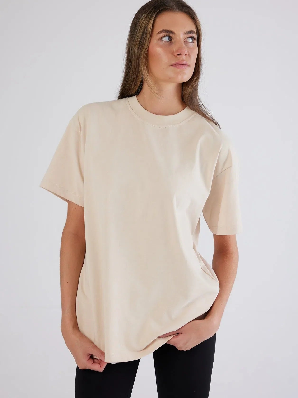 T-shirt is a boxy oversized fit, Recommend to go with your usual sizing or size down for a more fitted fit.