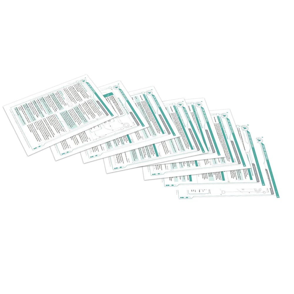 - 8 double-sided reference sheets including the actions of each role aboard a starship, Momentum spend reference tables, conflict rules references, and more.
