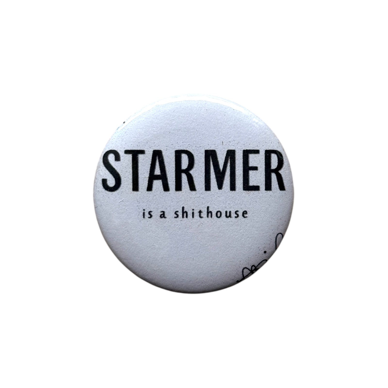 ✔️ 43mm round badge with bold “Starmer Is A Shithouse” design