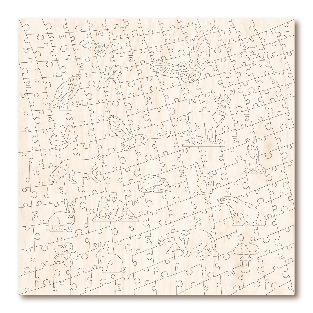 Introducing the Summer Badgers wooden jigsaw, a stunning puzzle with 234 whimsical and irregular shaped pieces. Immerse yourself in the moonlit field scene, adorned with badgers, wildflowers, and an enchanting owl under the full moon. Crafted from high-quality 5mm Linden plywood, this puzzle is both beautiful and challenging. Perfect for puzzle enthusiasts and nature lovers alike.