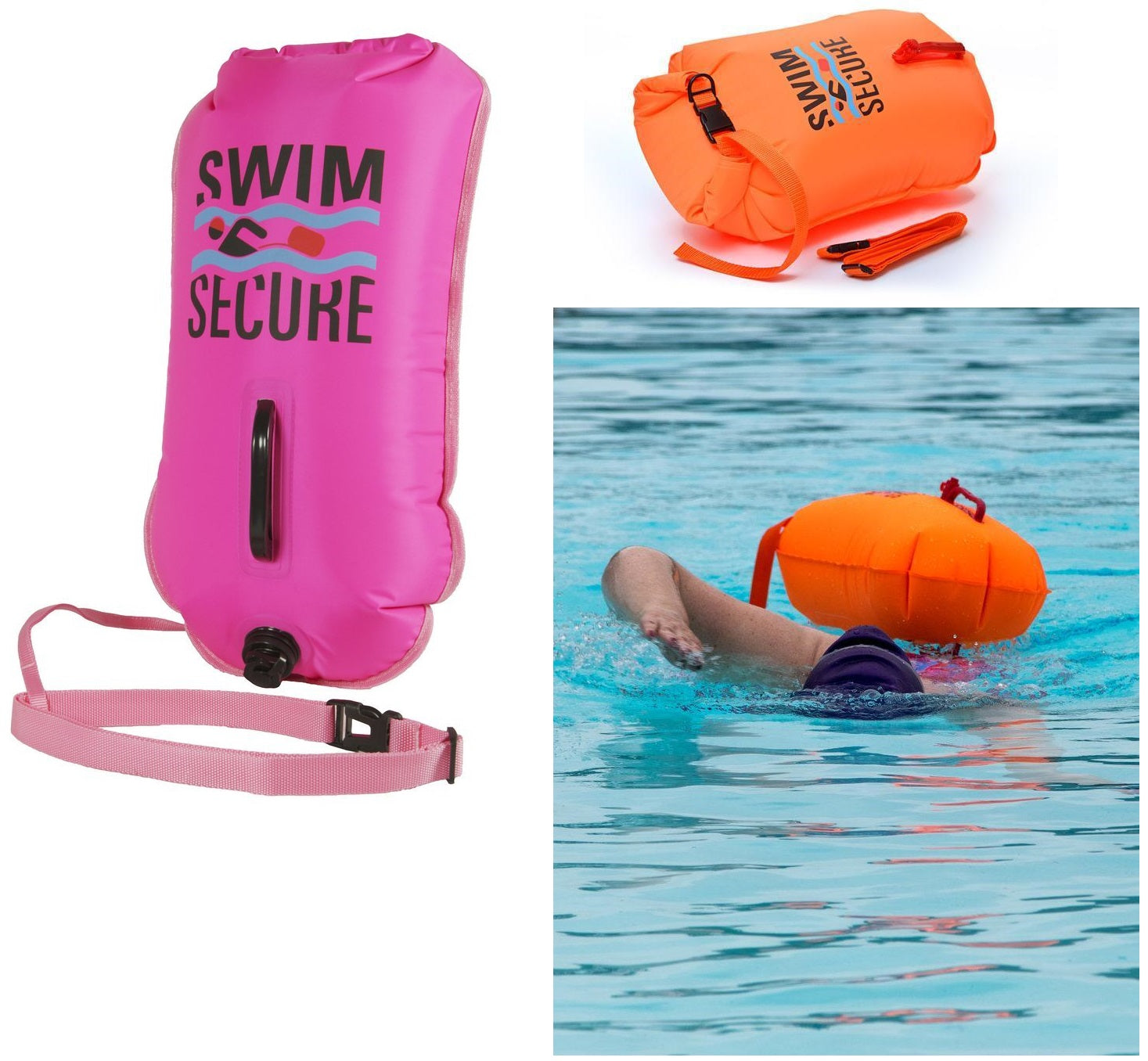 A brightly coloured high visibility inflatable dry bag with leash and waist belt. Ideal for storing kit whilst you swim and for increased visibility in open water.