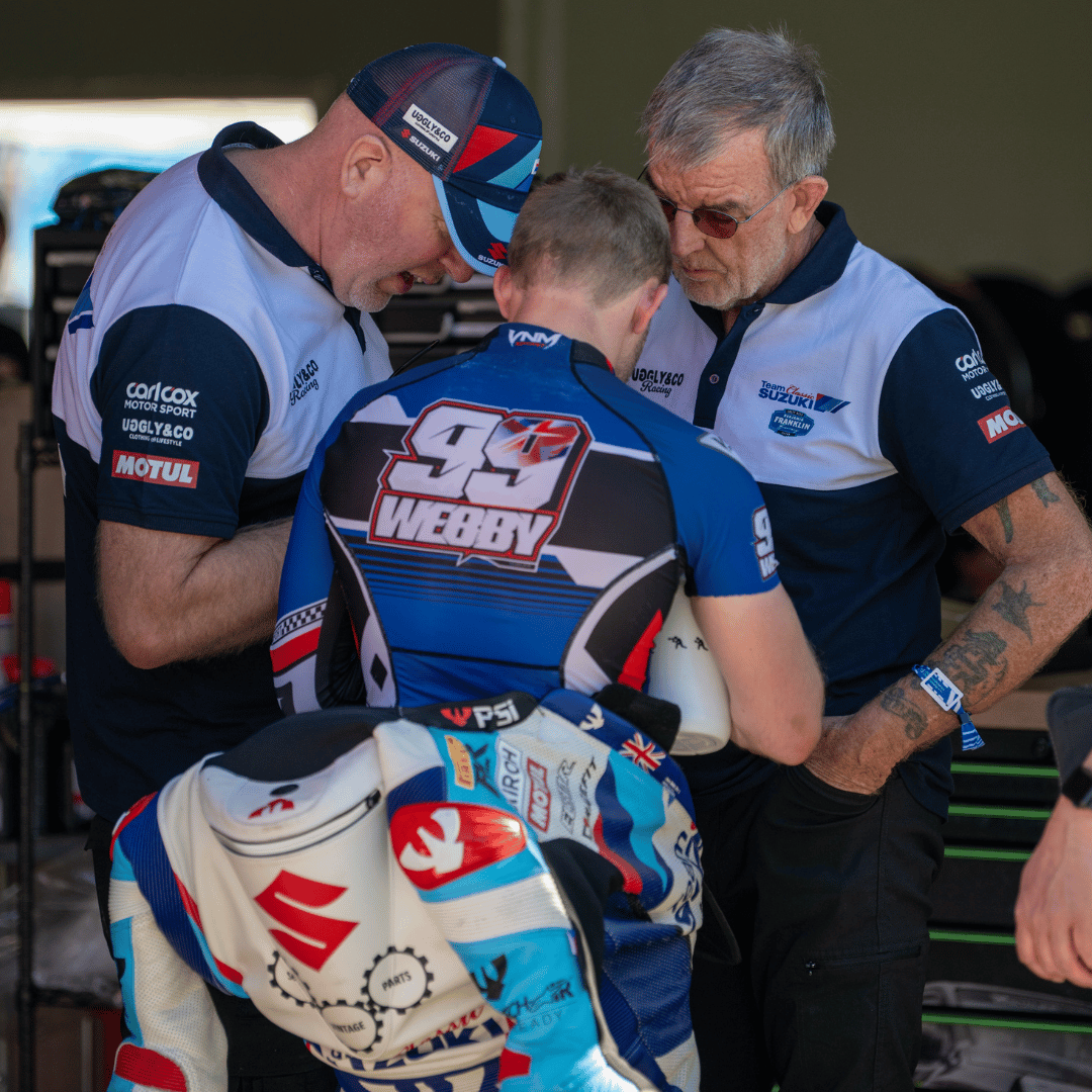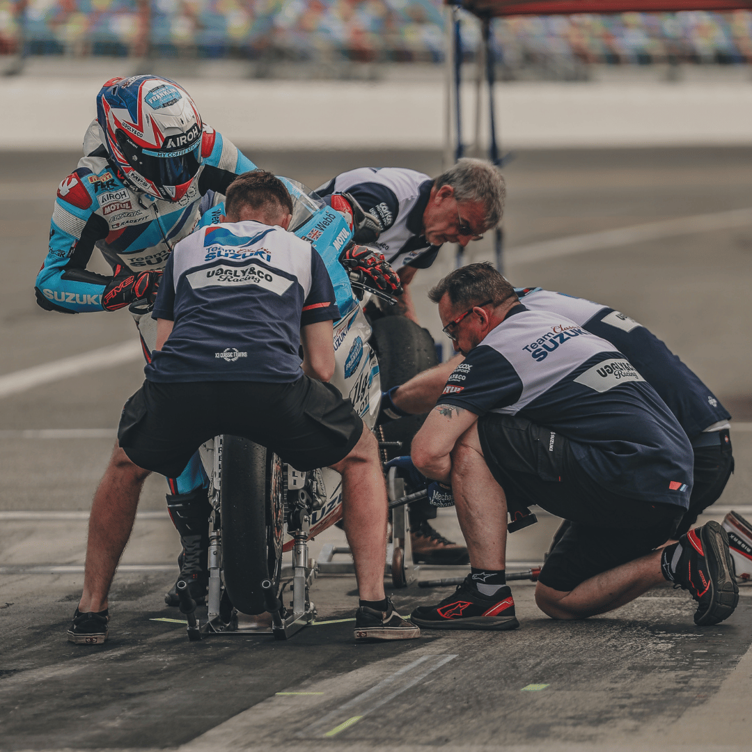Crafted from high-quality, breathable cotton, the shirt features a sleek and structured silhouette with a sharp collar and button placket — ideal for both trackside wear and everyday style. On the back, a bold embroidered Suzuki logo stands proudly, marking its place within the official Team Classic Suzuki range. Supporting sponsors including Motul, Benjamin Franklin Brewery, Carl Cox Motorsport, and Uggly&Co are also proudly stitched across the garment, reflecting the powerful partnerships behind the team.