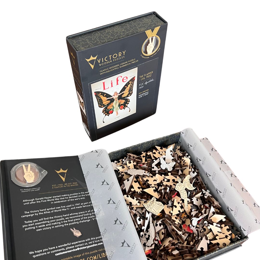 This beautiful wooden jigsaw features a vintage Life magazine cover from 1922, brought to life with 250 thick, chunky, irregular and whimsical shaped pieces. Crafted from high-quality 5mm Linden plywood, it's a perfect blend of illustrative art and entertainment.
