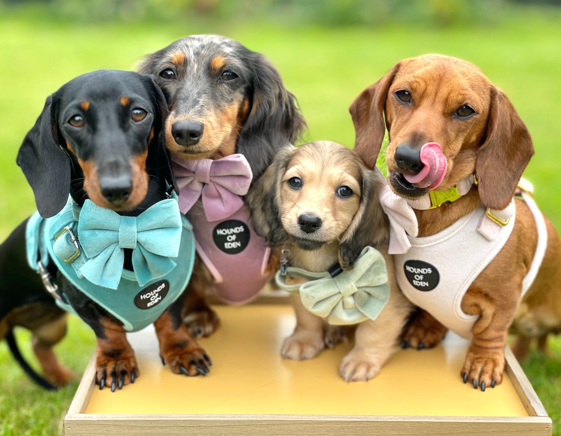 A fully adjustable velvet harness. It is FULLY adjustable in the neck + chest, meaning you can get the PERFECT fit for your dog.