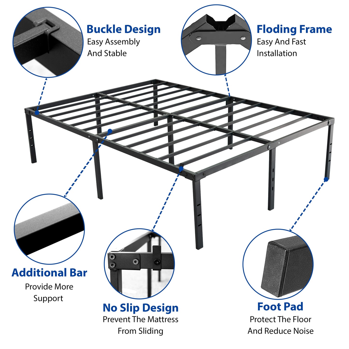 - PRACTICAL AND RELIABLE DESIGN: With an ultra-durable metal structure and over 45 cm of under-bed clearance space for storing odds and ends, this metal foundation is an understated solution built for more than just great sleep.